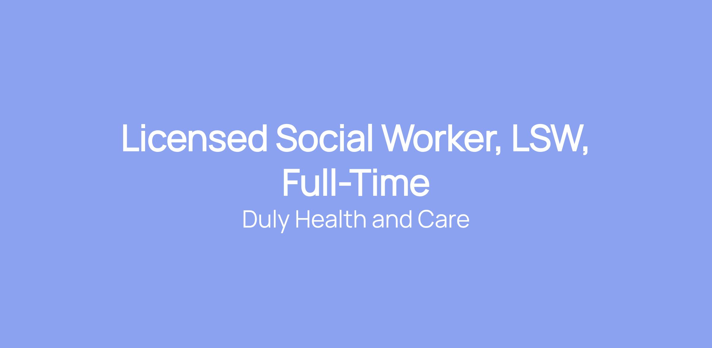 Licensed Social Worker, LSW, Full-Time