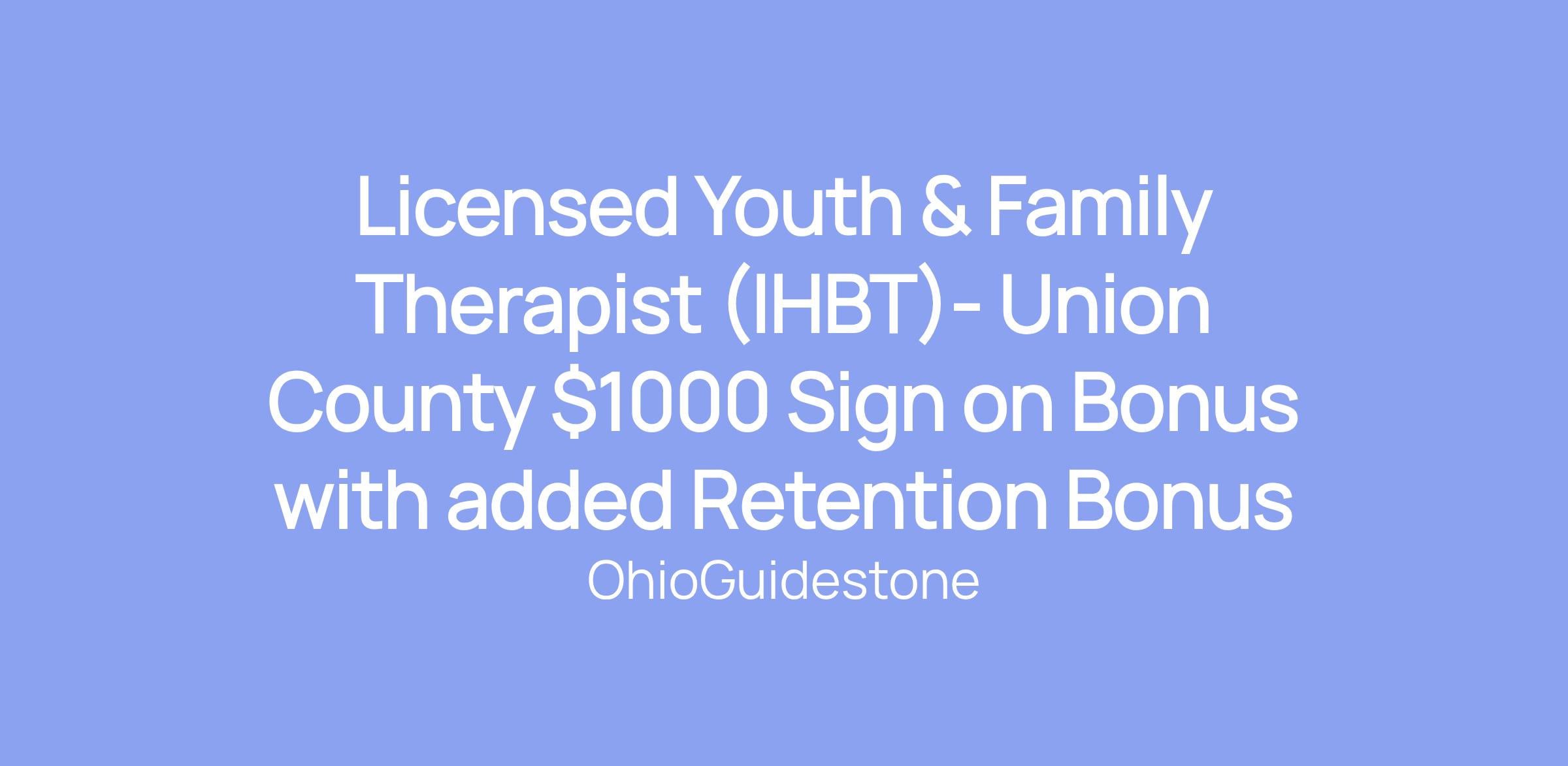 Licensed Youth & Family Therapist (IHBT)- Union County $1000 Sign on Bonus with added Retention Bonus