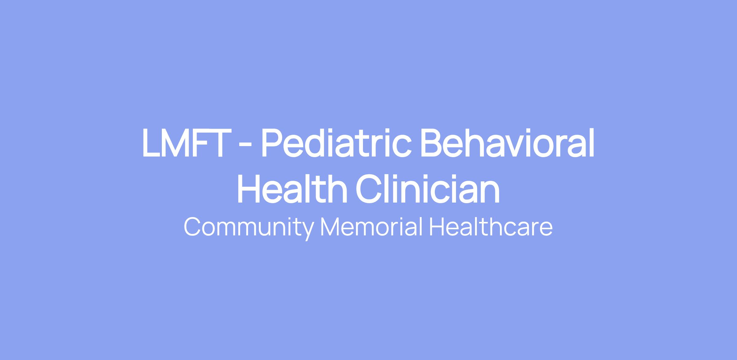 LMFT - Pediatric Behavioral Health Clinician