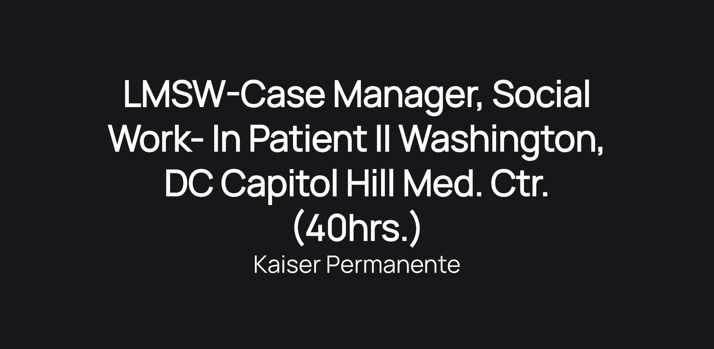 LMSW-Case Manager, Social Work- In Patient II Washington, DC Capitol Hill Med. Ctr. (40hrs.)