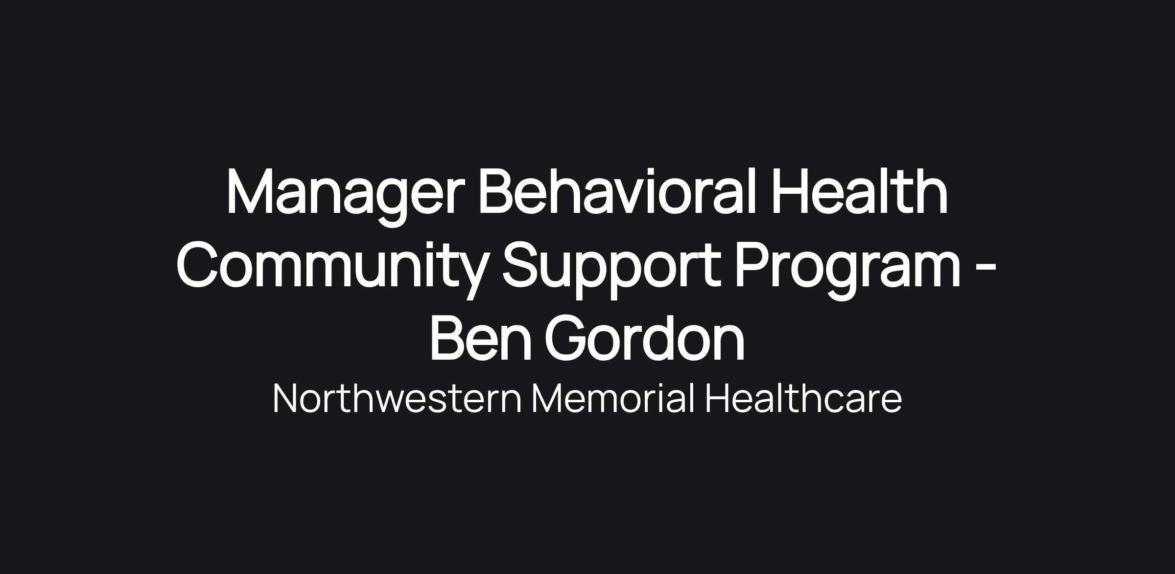 Manager Behavioral Health Community Support Program - Ben Gordon