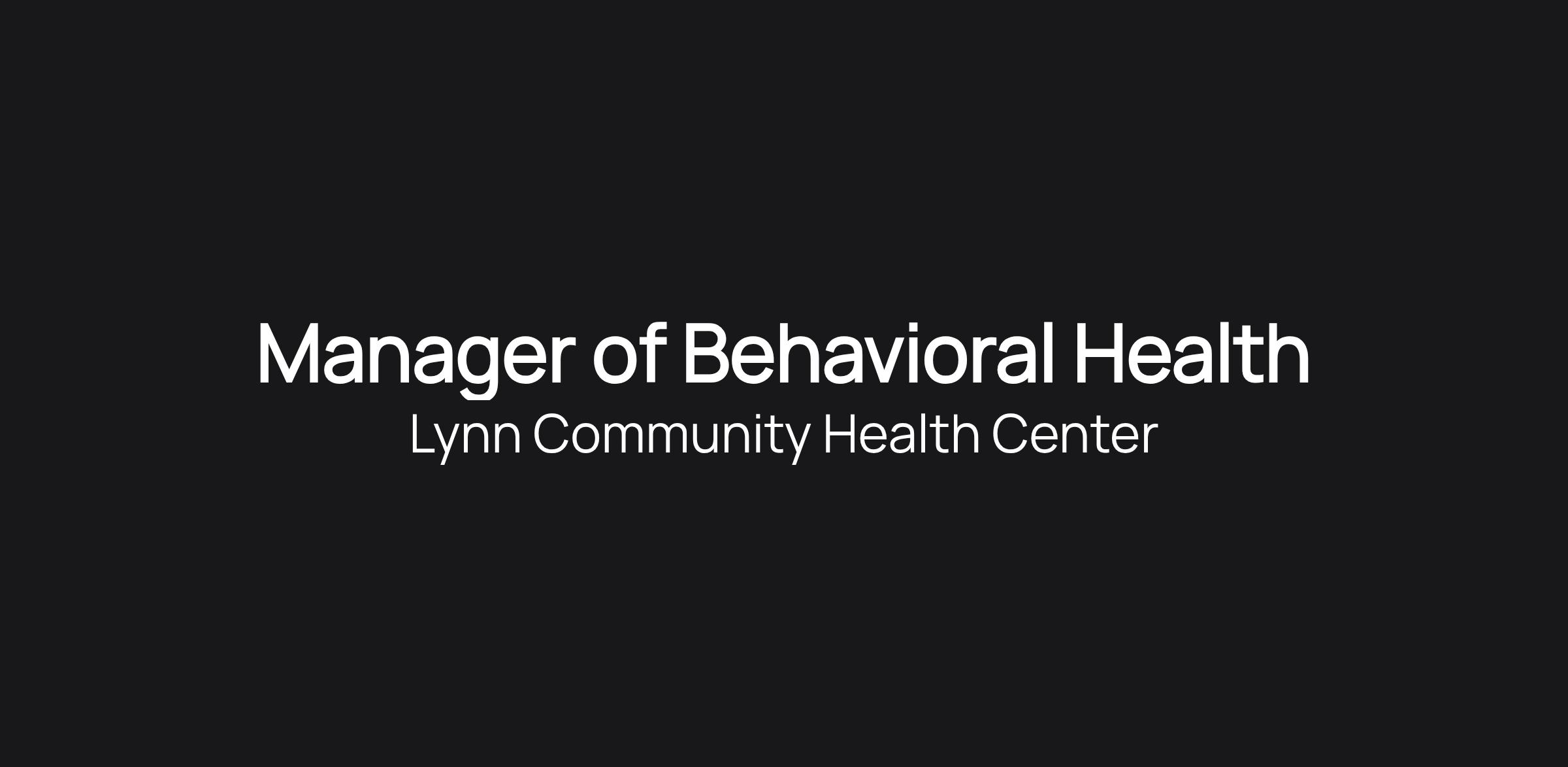 Manager of Behavioral Health