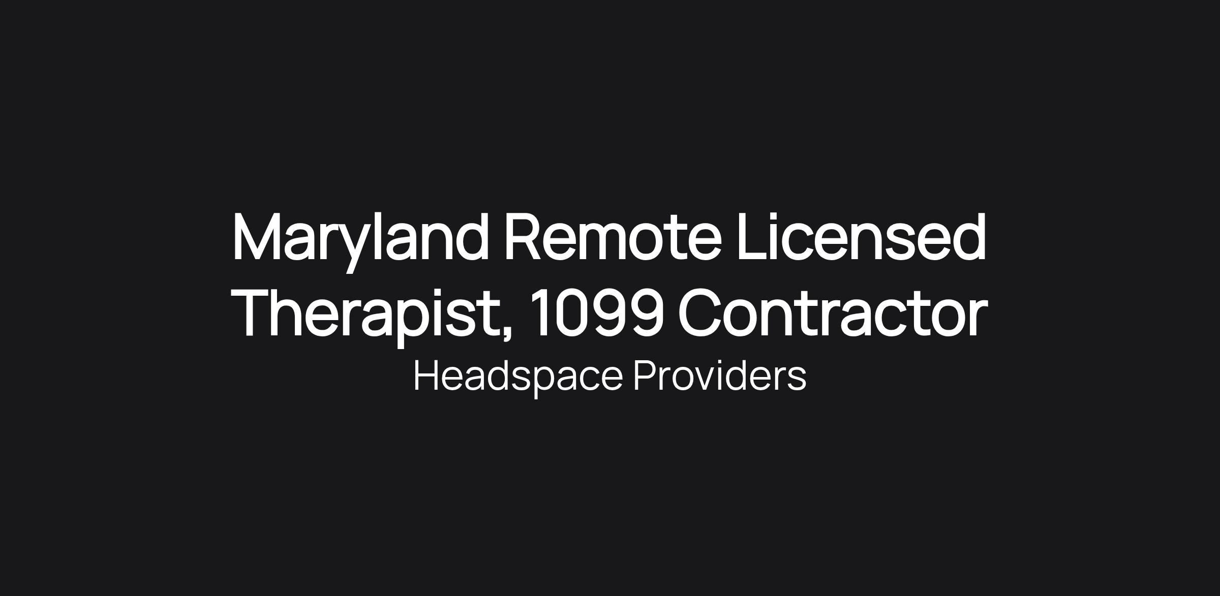 Maryland Remote Licensed Therapist, 1099 Contractor