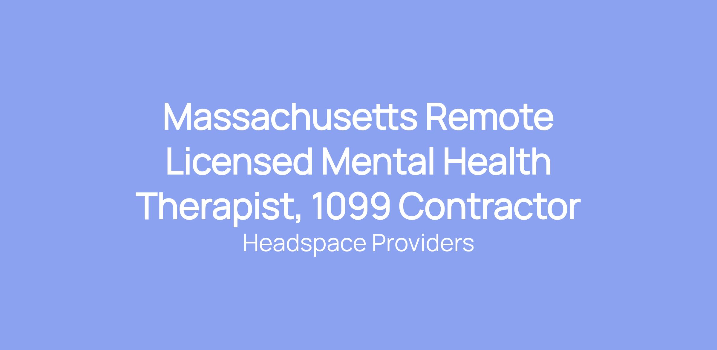 Massachusetts Remote Licensed Mental Health Therapist, 1099 Contractor