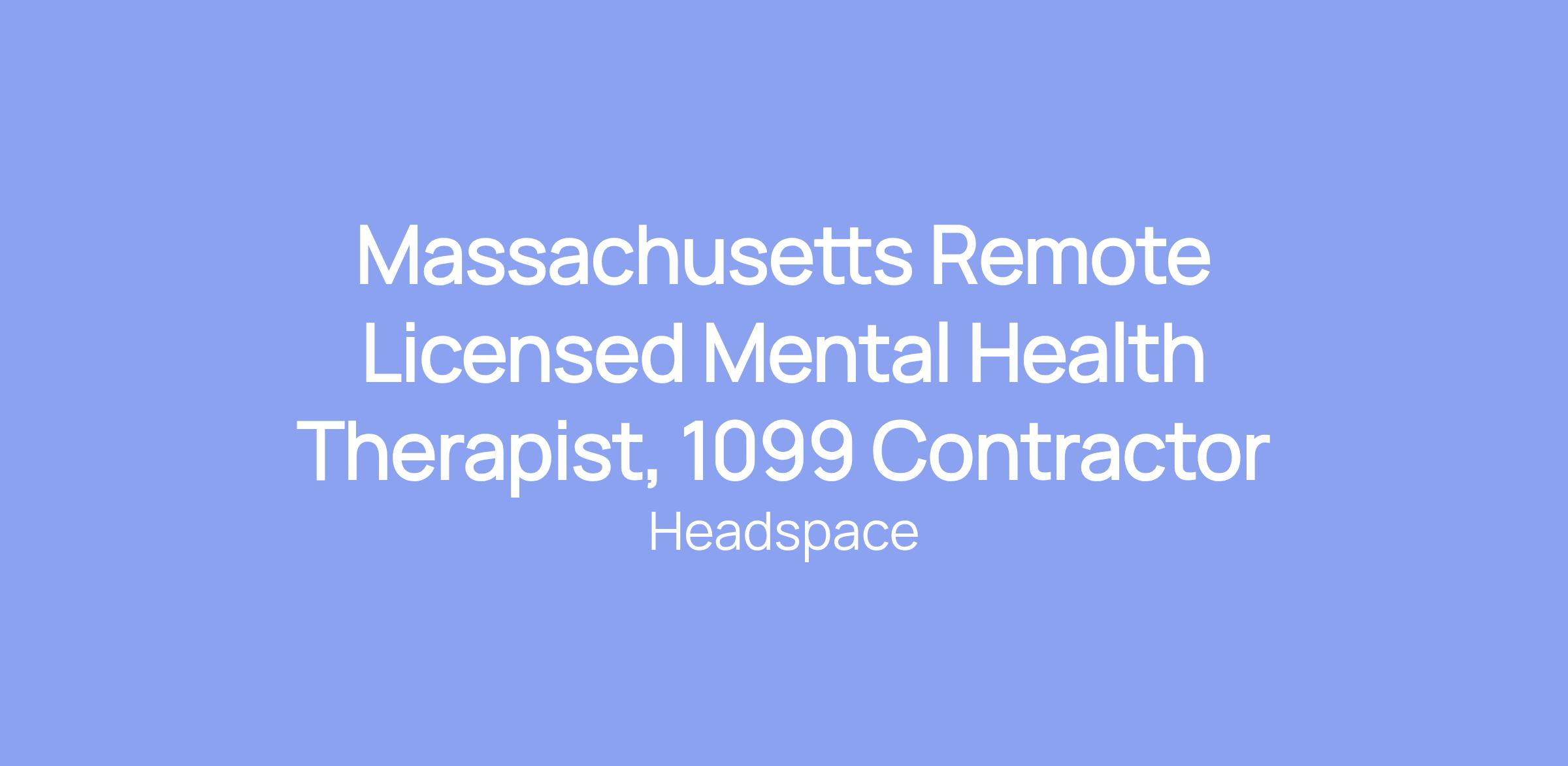 Massachusetts Remote Licensed Mental Health Therapist, 1099 Contractor