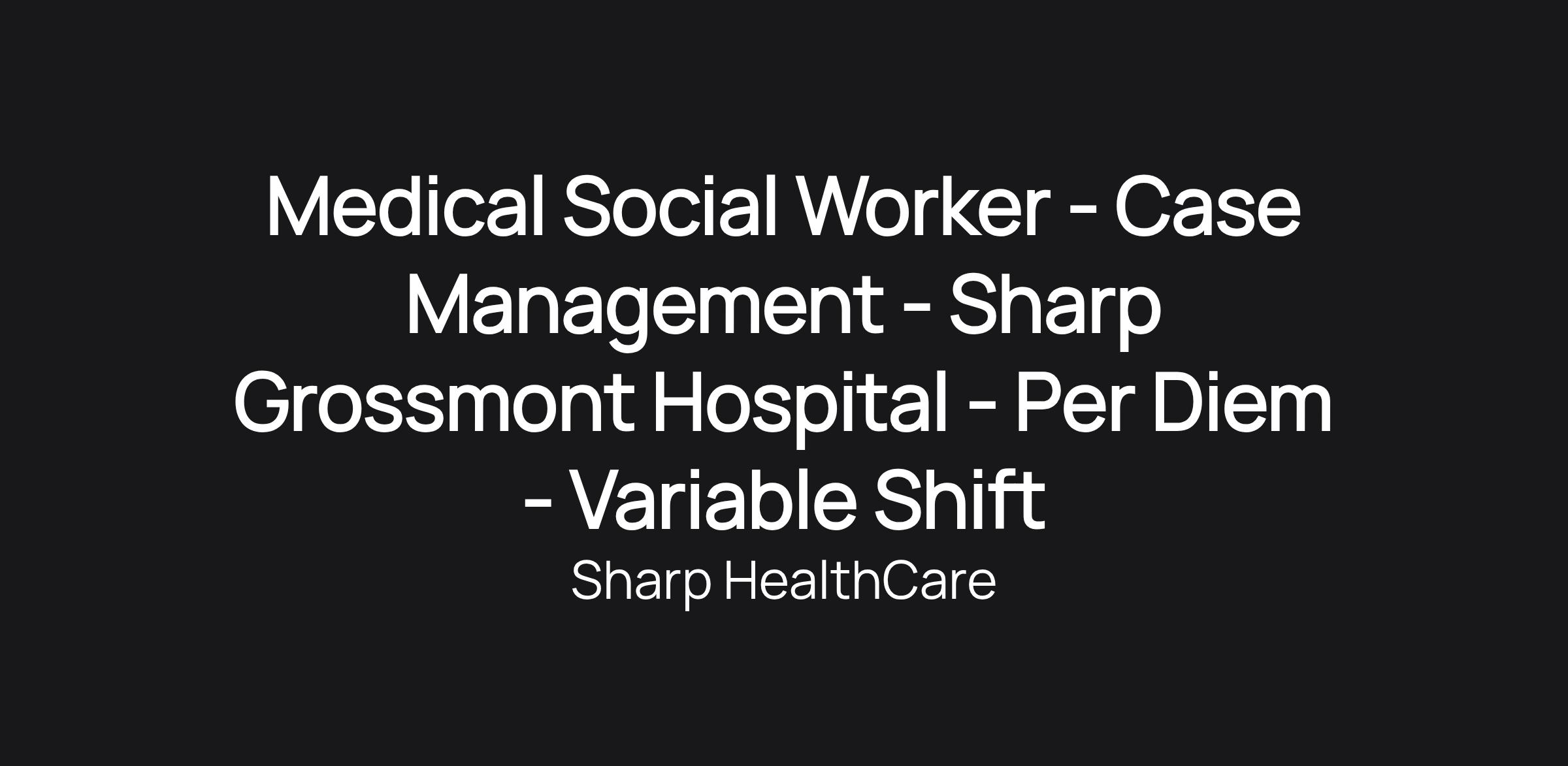 Medical Social Worker - Case Management - Sharp Grossmont Hospital - Per Diem - Variable Shift