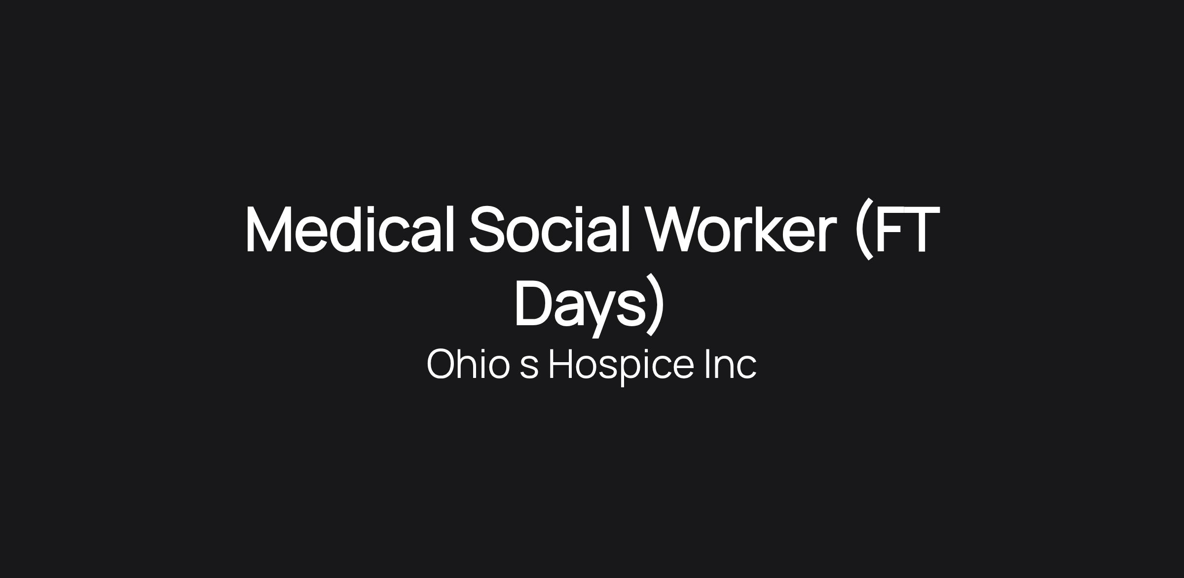 Medical Social Worker (FT Days)