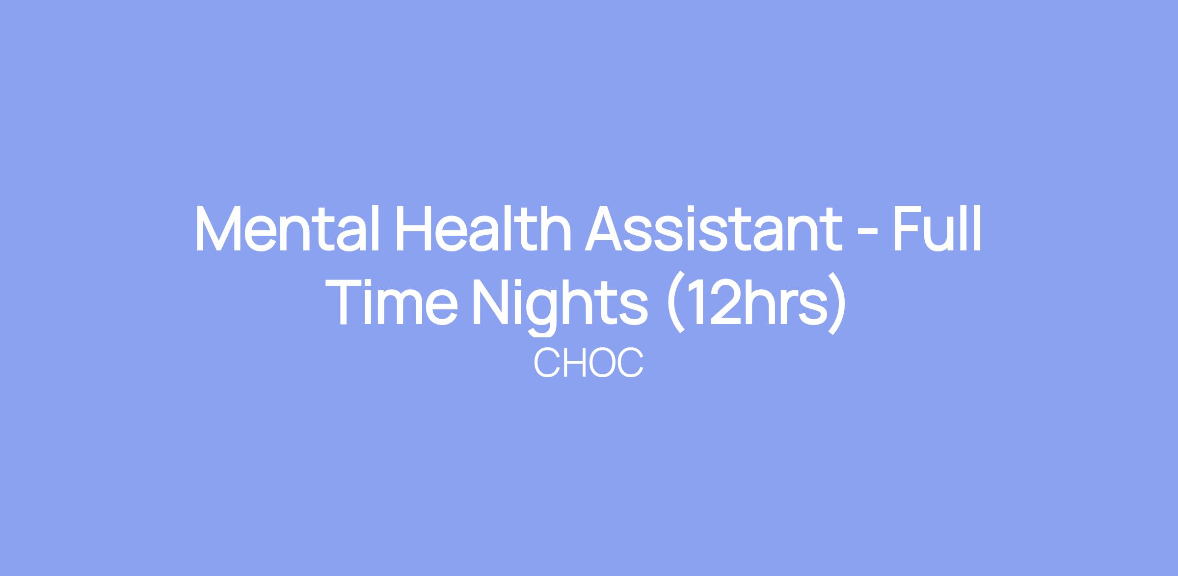 Mental Health Assistant - Full Time Nights (12hrs)