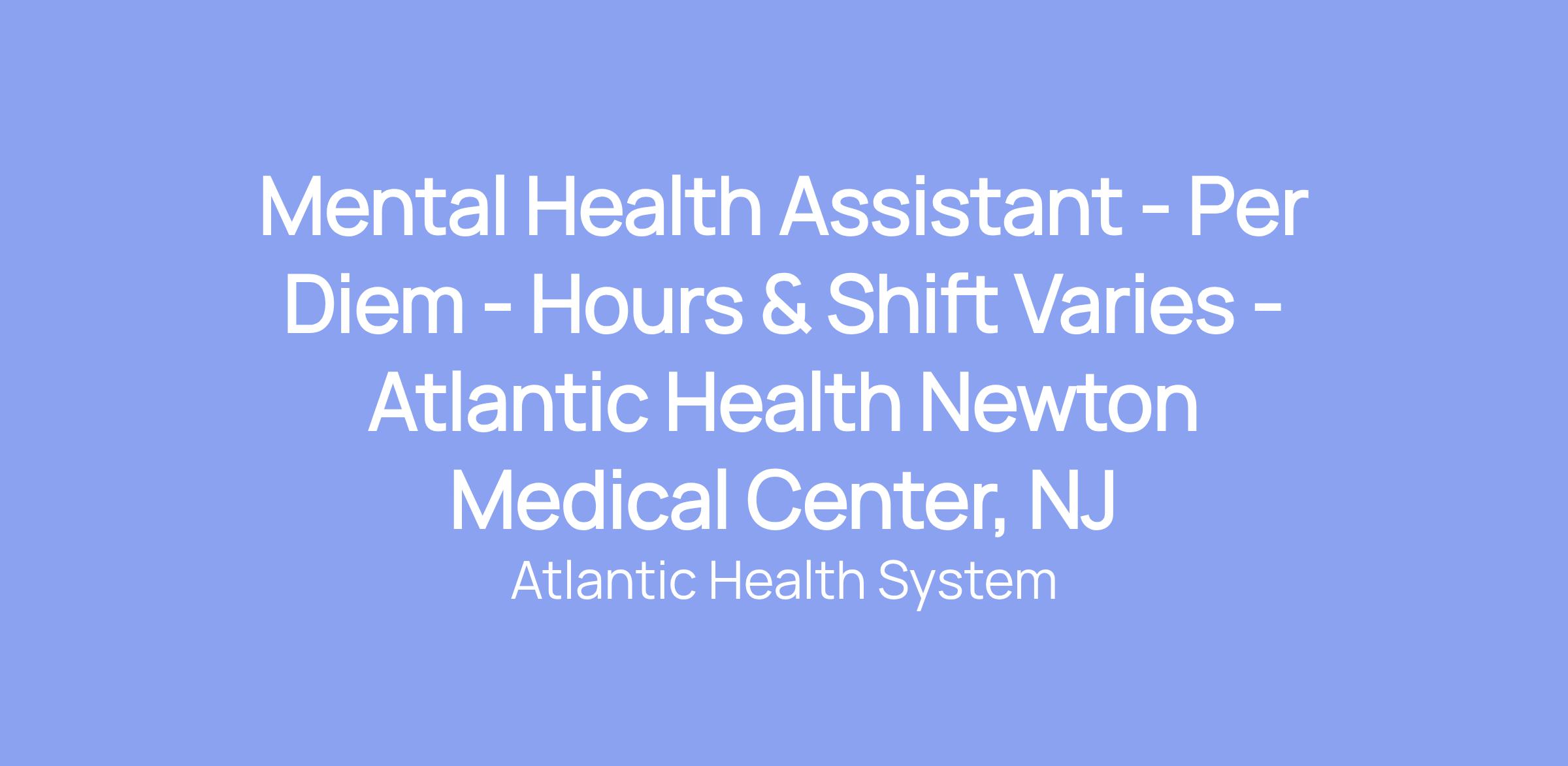 Mental Health Assistant - Per Diem - Hours & Shift Varies - Atlantic Health Newton Medical Center, NJ