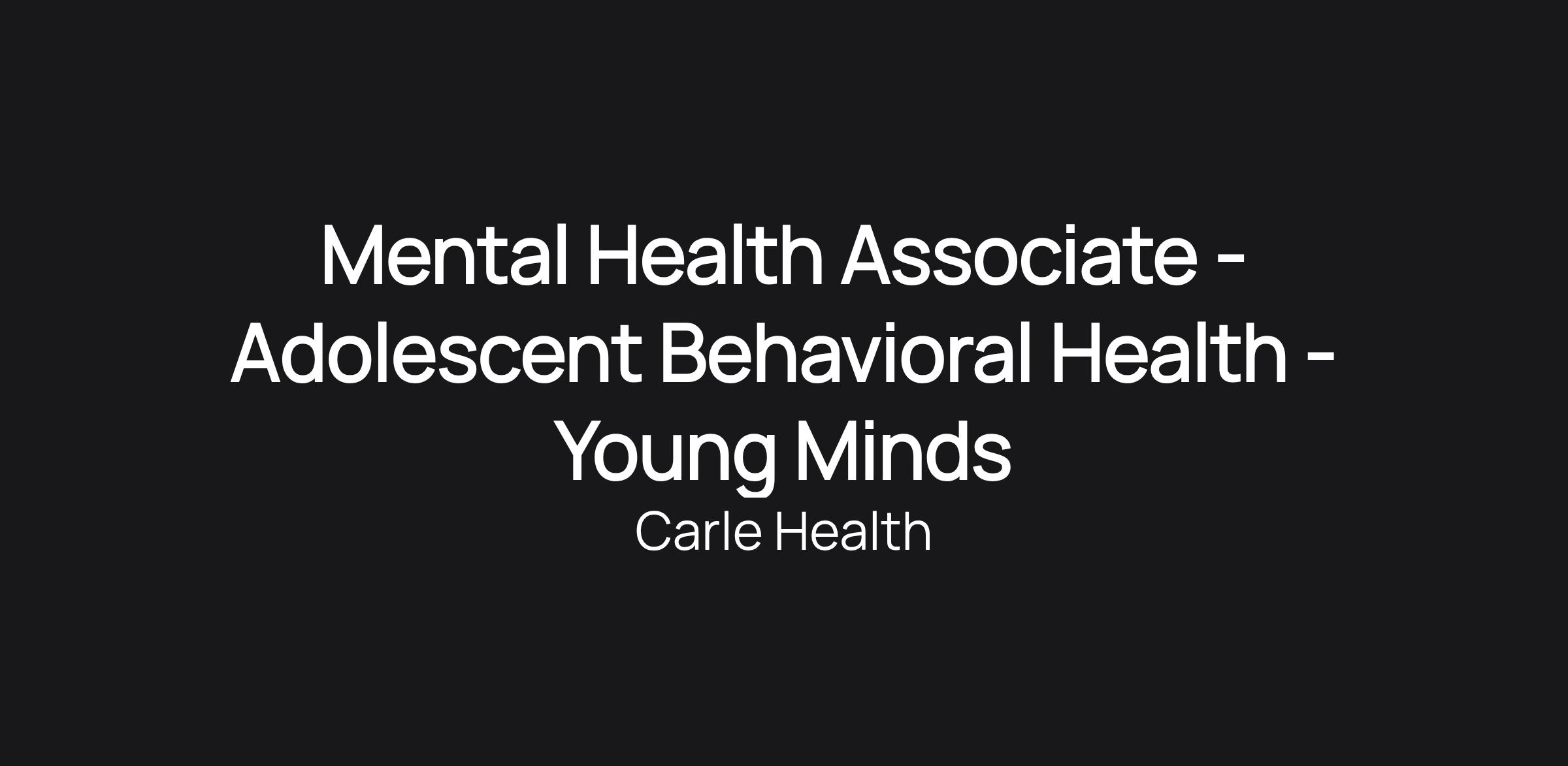 Mental Health Associate - Adolescent Behavioral Health - Young Minds