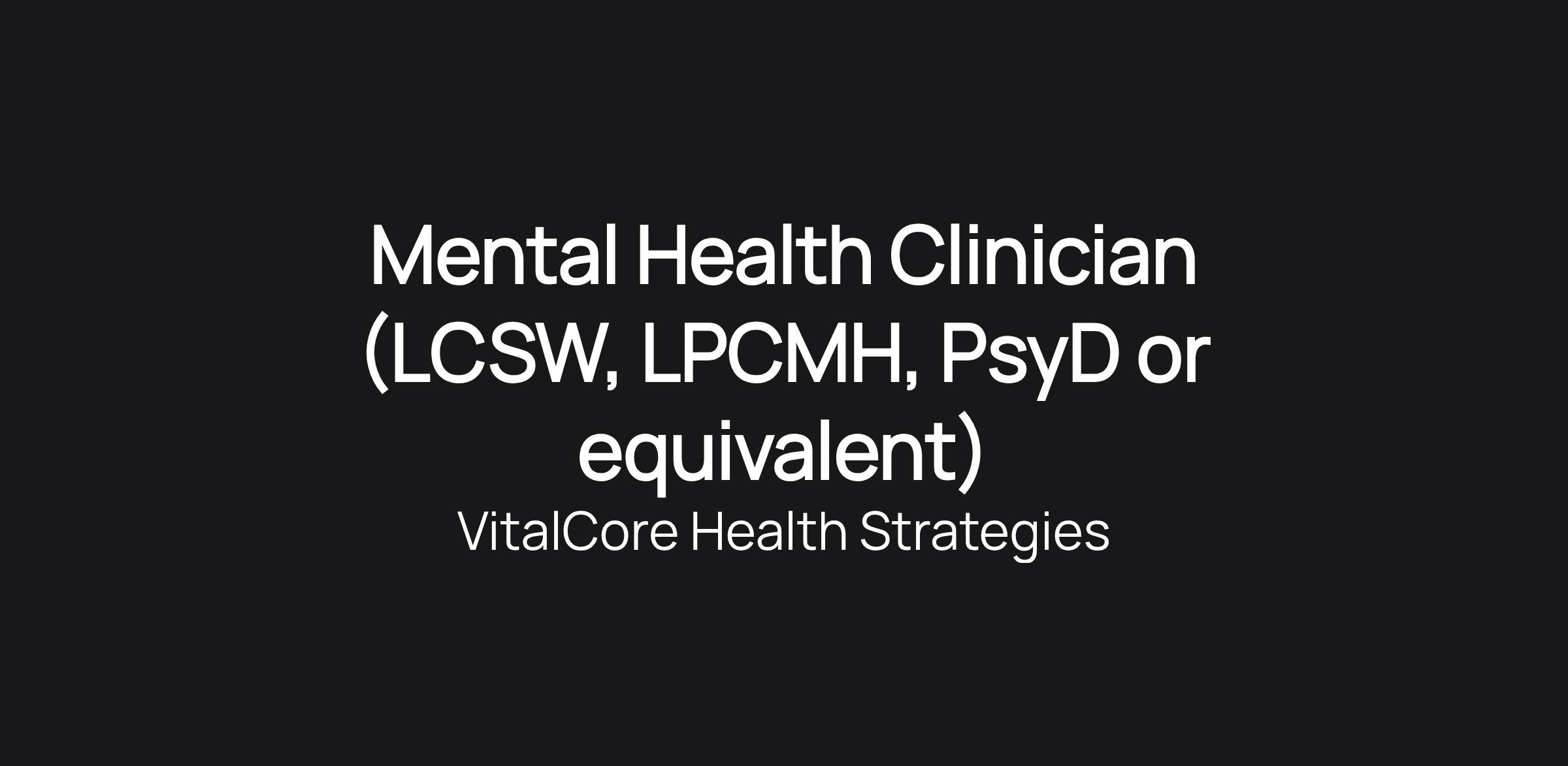 Mental Health Clinician (LCSW, LPCMH, PsyD or equivalent)