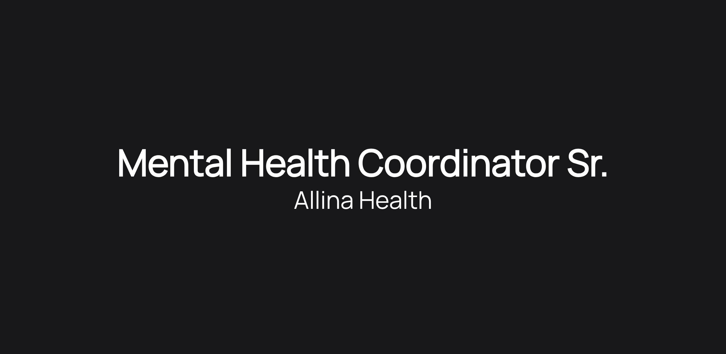 Bring your mental health expertise to Allina Health. You will be a vital member of our mental health coordinator team. Your focus will be on meeting the patients' needs and ensuring a smooth healthcare experience. Your dedication and teamwork contribute to maintaining the highest quality of care at Allina Health.