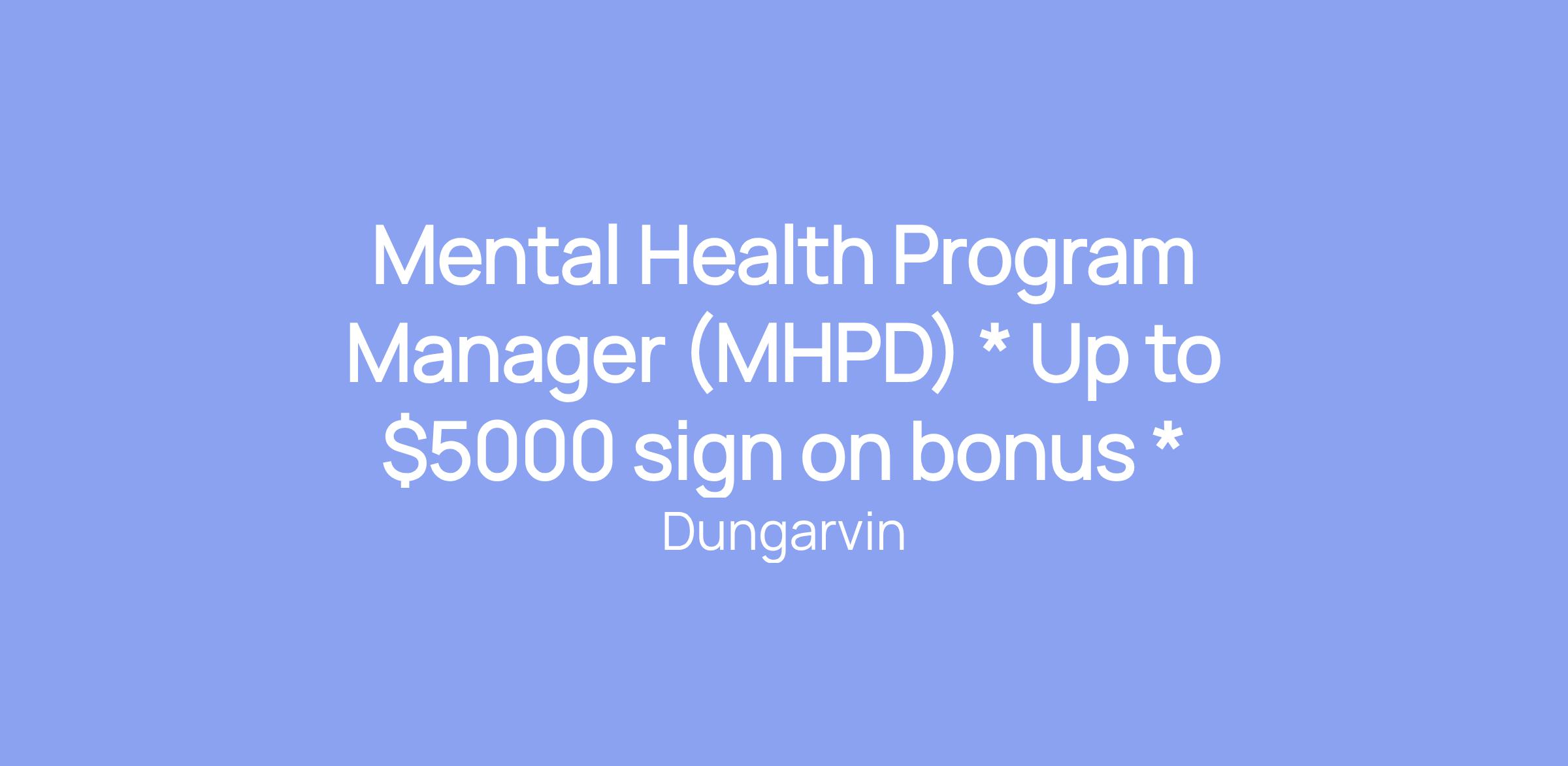 Mental Health Program Manager (MHPD) * Up to $5000 sign on bonus *