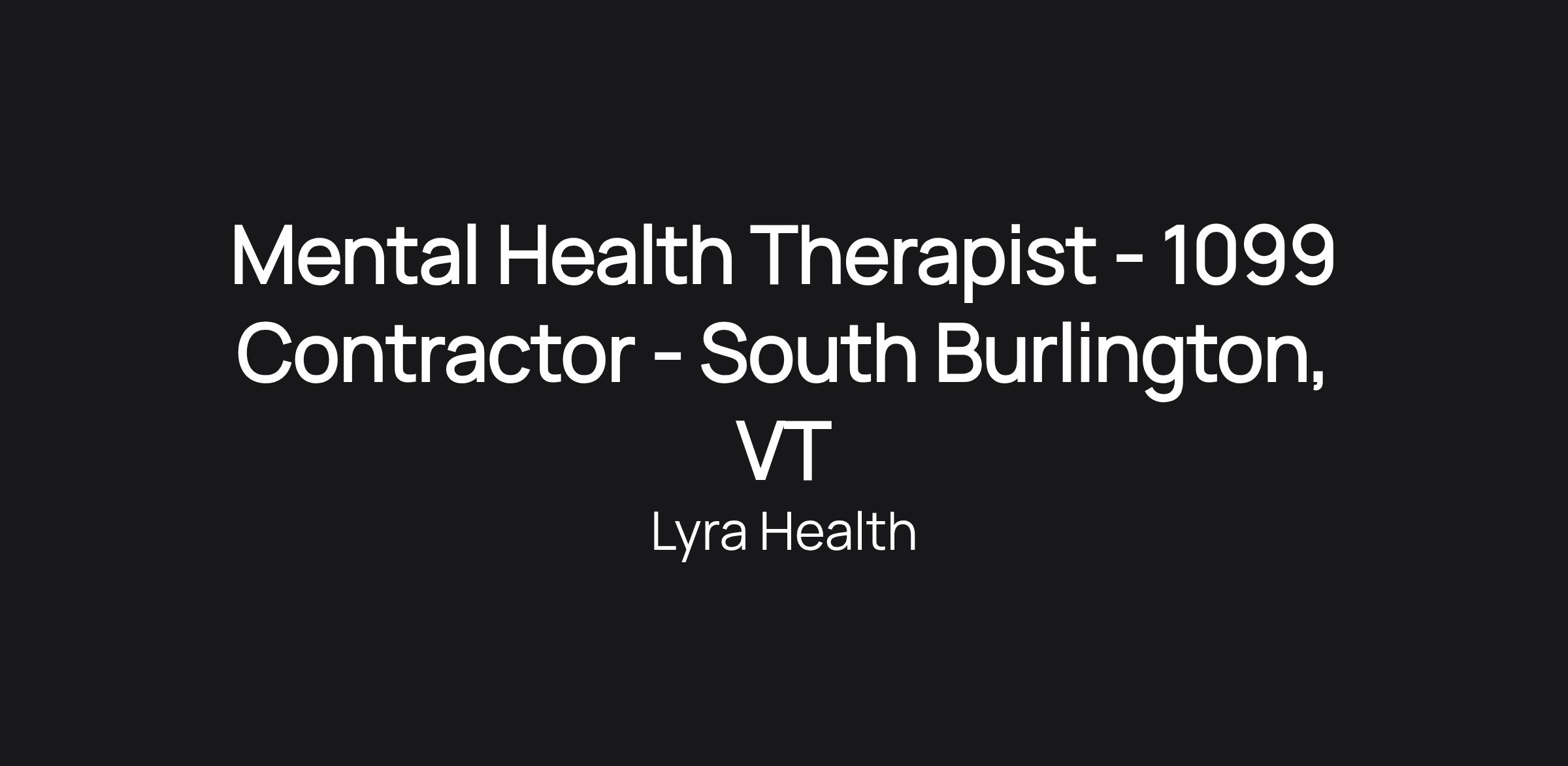 Mental Health Therapist - 1099 Contractor - South Burlington, VT