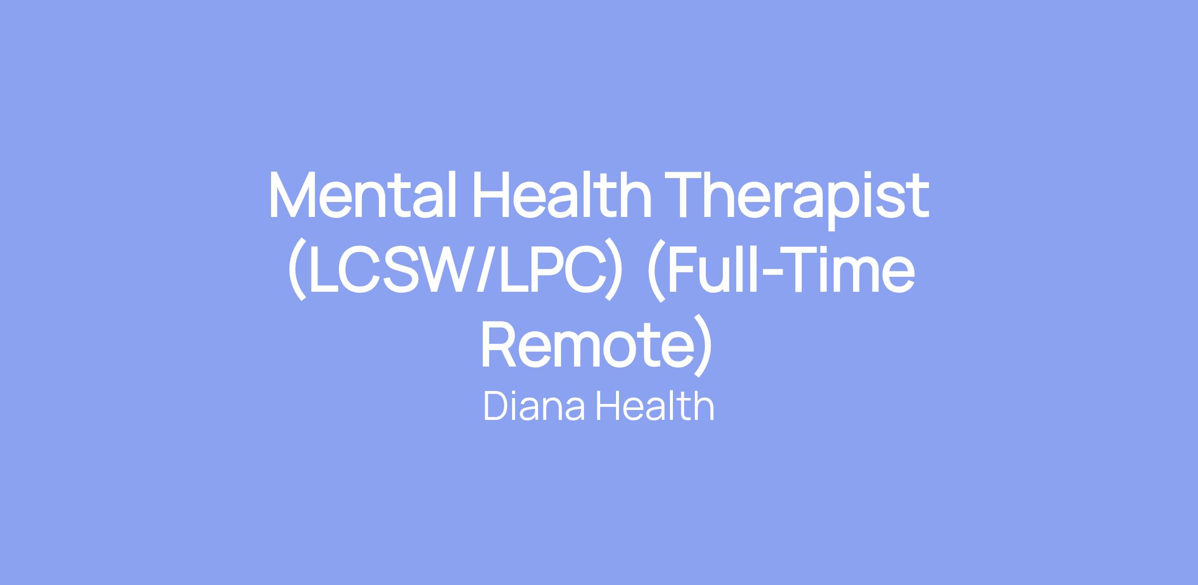 Mental Health Therapist (LCSW/LPC) (Full-Time Remote)