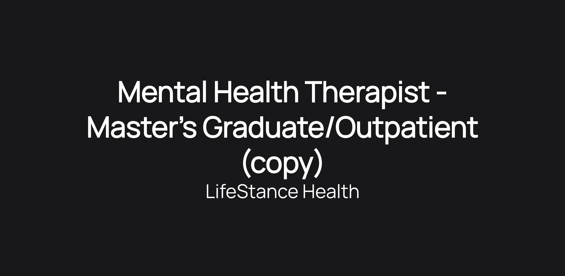 Mental Health Therapist - Master's Graduate/Outpatient (copy)