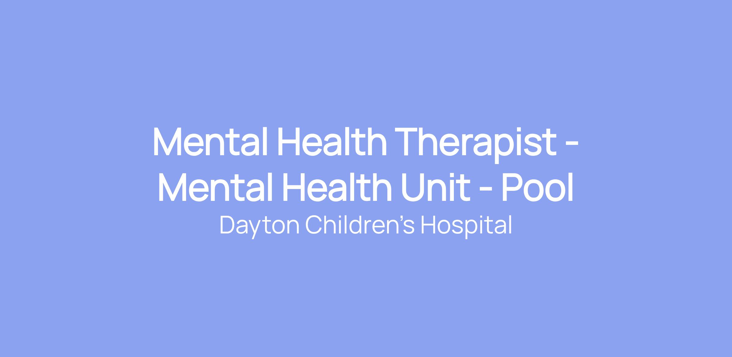 Mental Health Therapist - Mental Health Unit - Pool