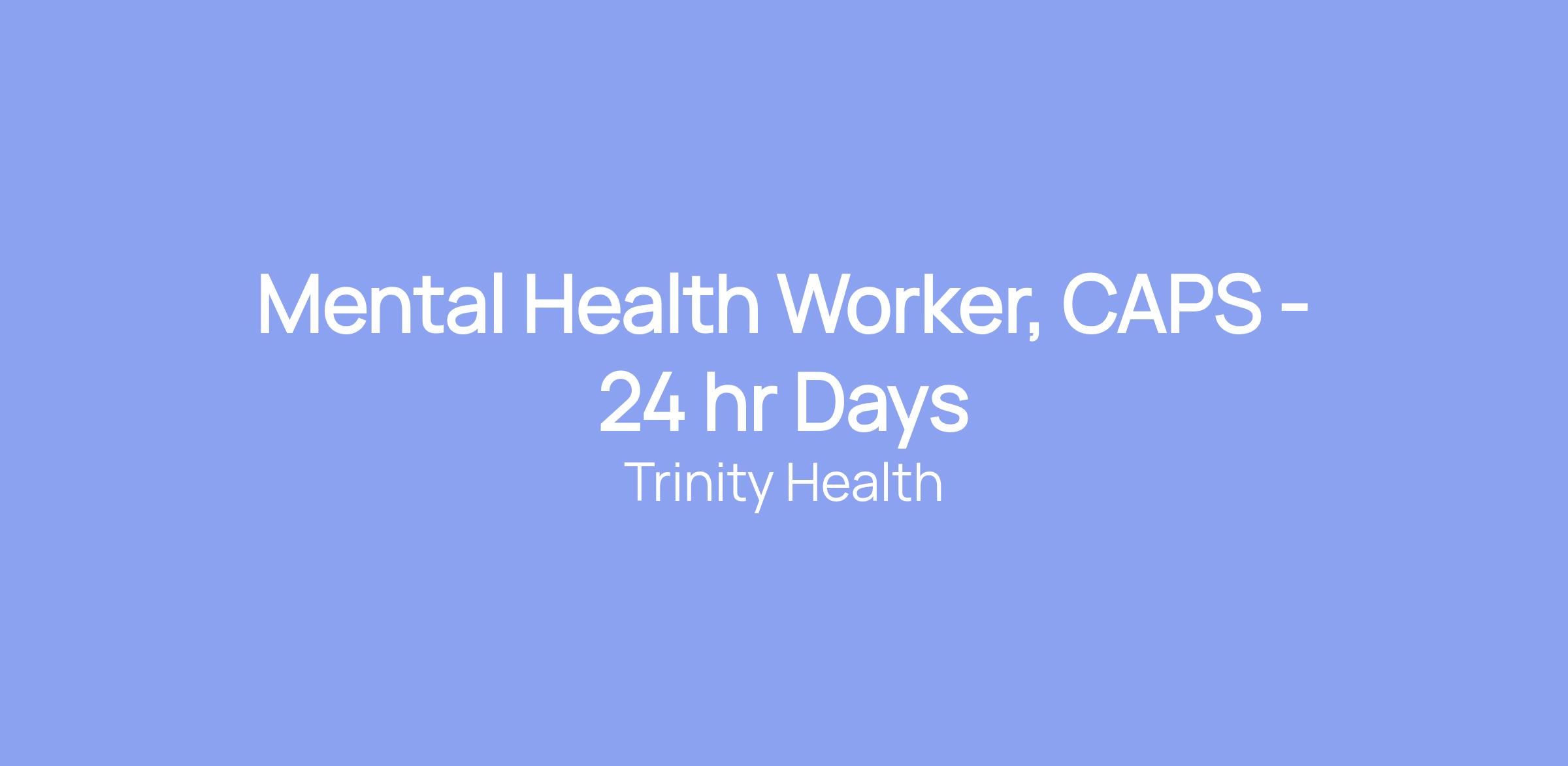 Mental Health Worker, CAPS - 24 hr Days