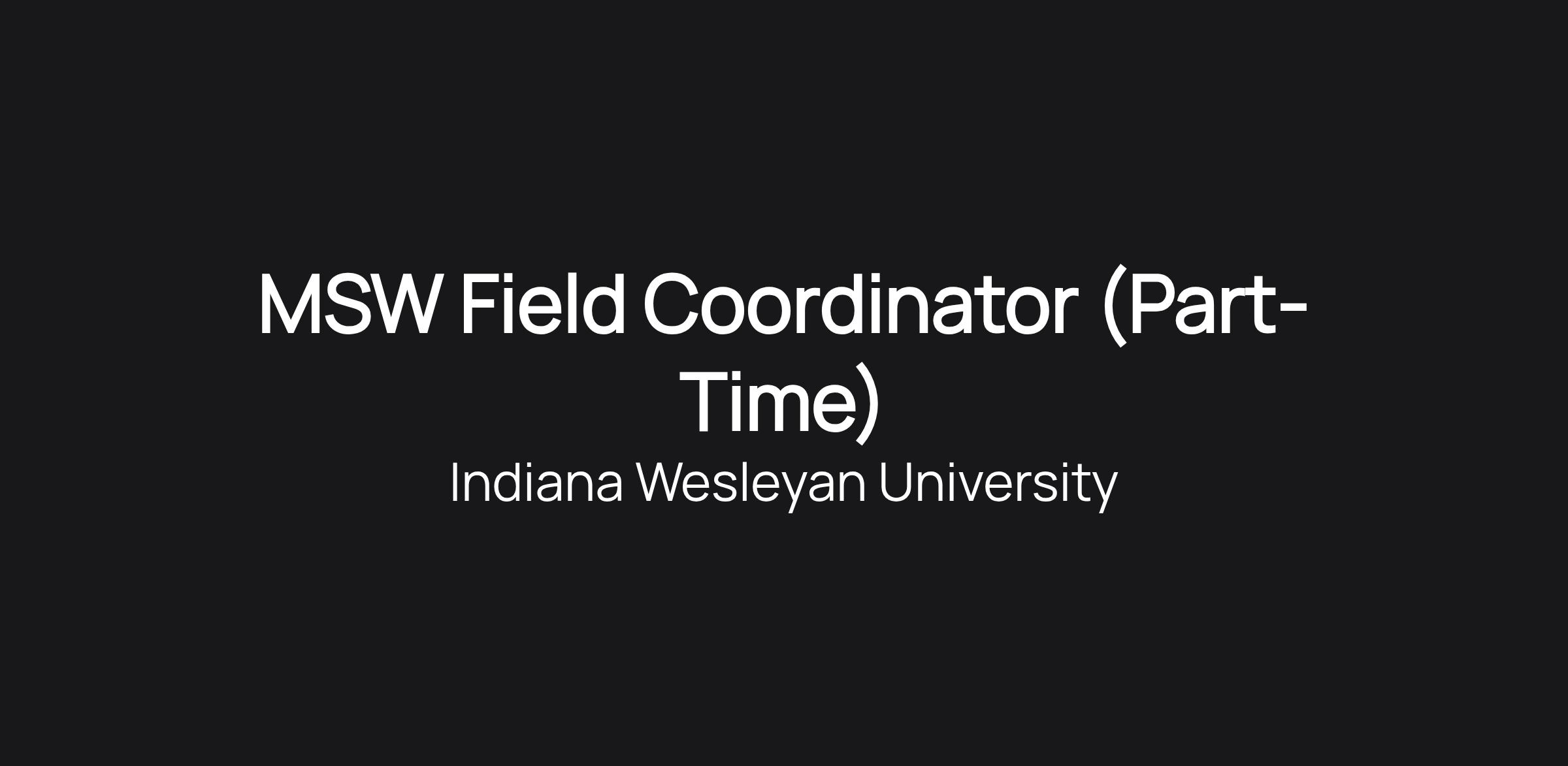 Job Title: MSW Field Coordinator (Part-Time)