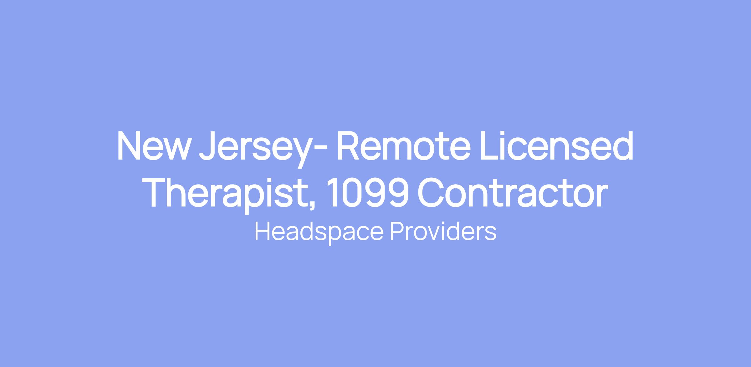 New Jersey- Remote Licensed Therapist, 1099 Contractor