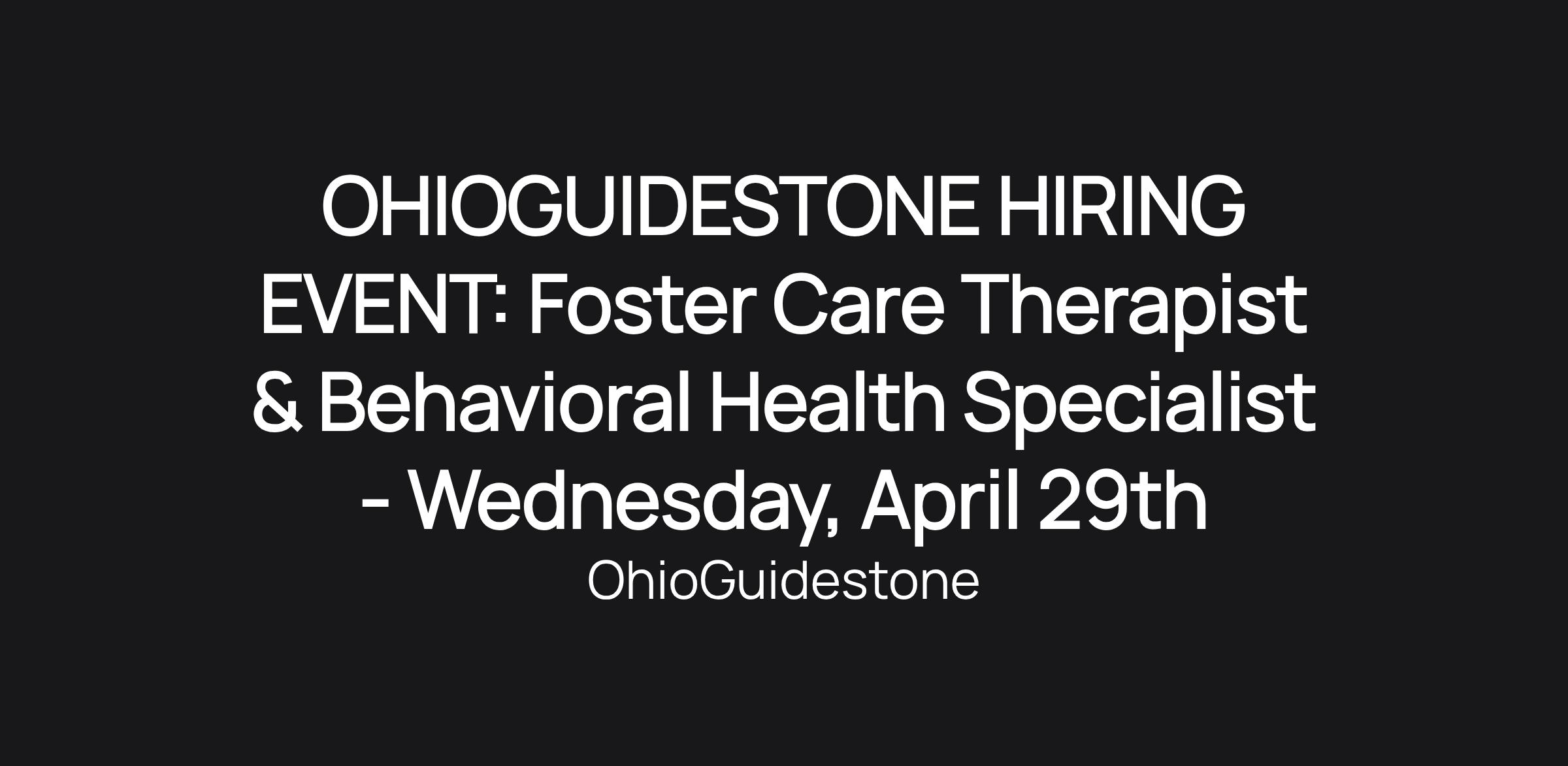 OHIOGUIDESTONE HIRING EVENT: Foster Care Therapist & Behavioral Health Specialist - Wednesday, April 29th