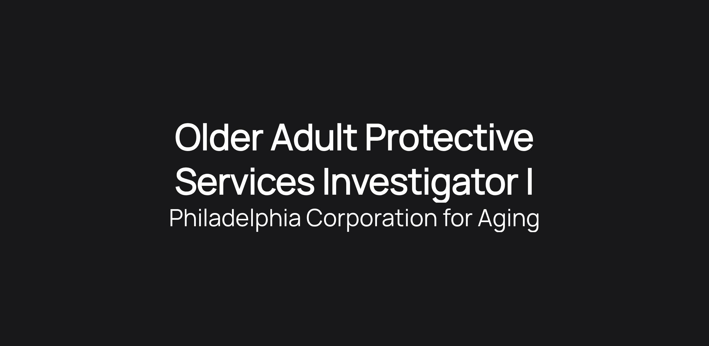 Older Adult Protective Services Investigator I