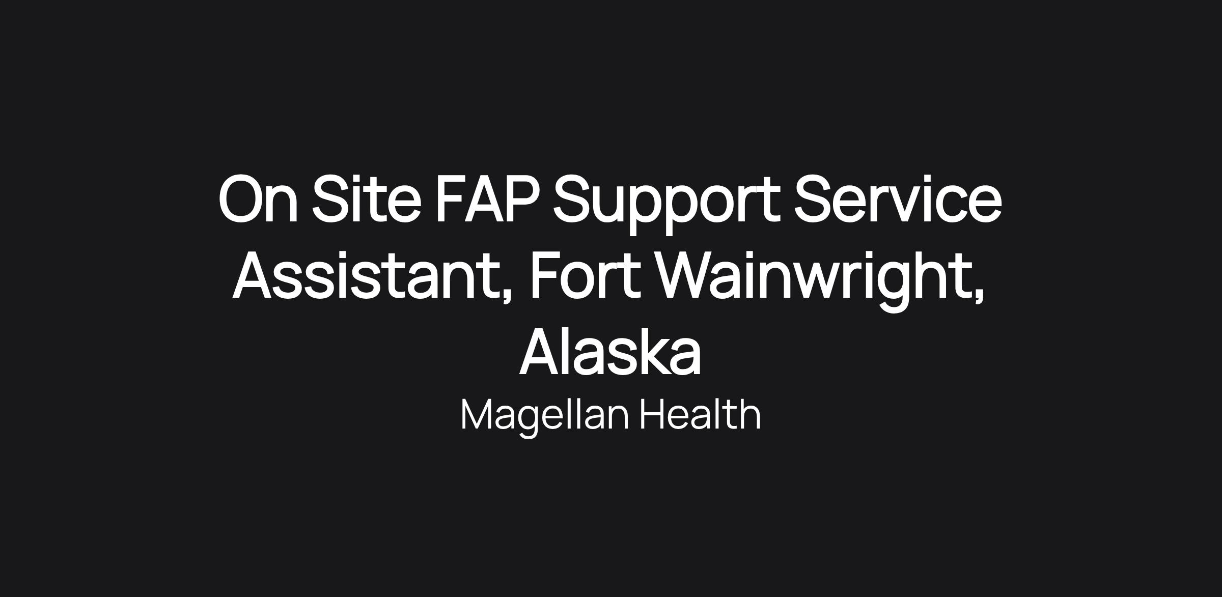On Site FAP Support Service Assistant, Fort Wainwright, Alaska
