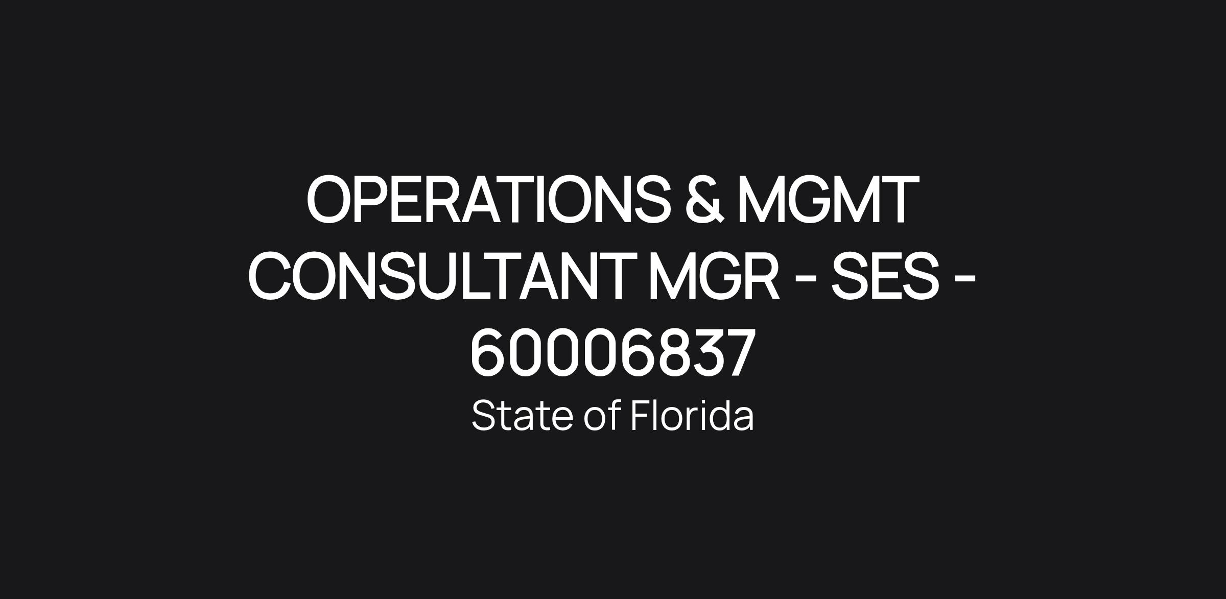 Working Title: OPERATIONS & MGMT CONSULTANT MGR - SES - 60006837