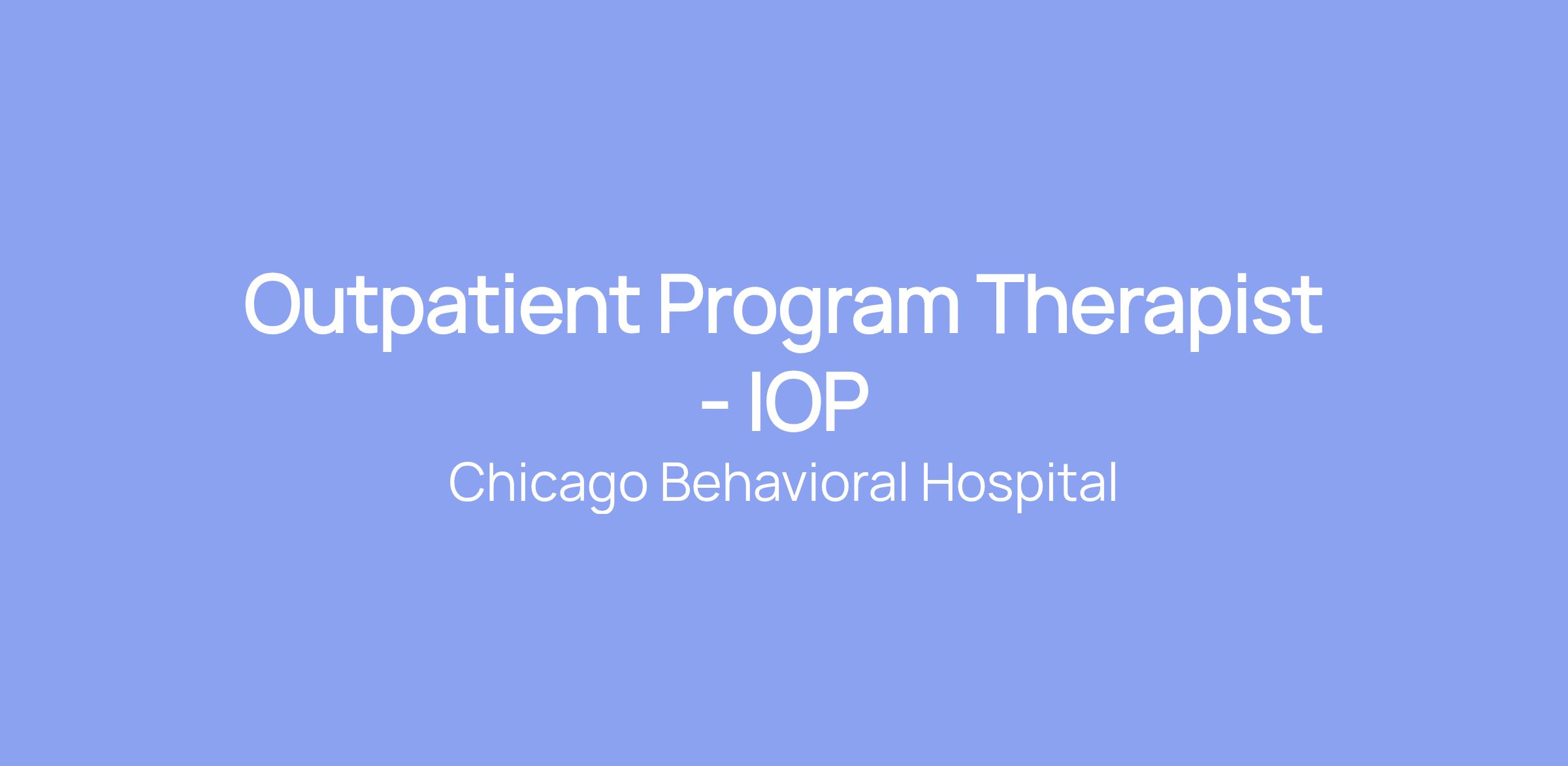 Job DetailsJob Location: Chicago Behavioral Hospital - Des Plaines, IL 60016Position Type: Full TimeSalary Range: $28.00 - $33.00 HourlyJOIN OUR TEAM AS AN OUTPATIENT PROGRAM THERAPIST!