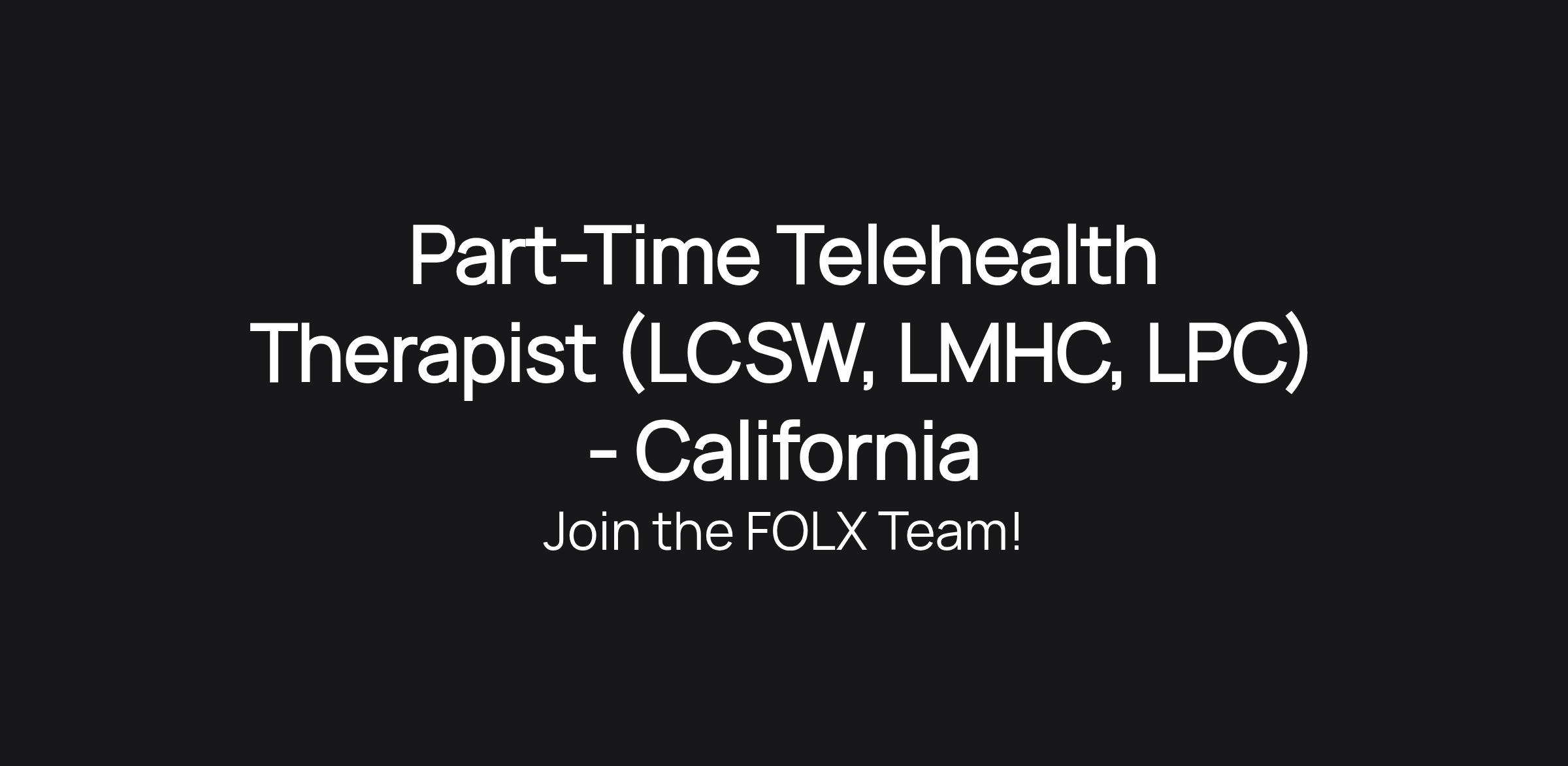 We are currently seeking a Part-Time Telehealth Therapist (LCSW, LMHC, LPC) - California to join our FOLX Behavioral Health Services! As a therapist with FOLX, you will be providing individual therapy to our members (patients) through a telehealth platform.