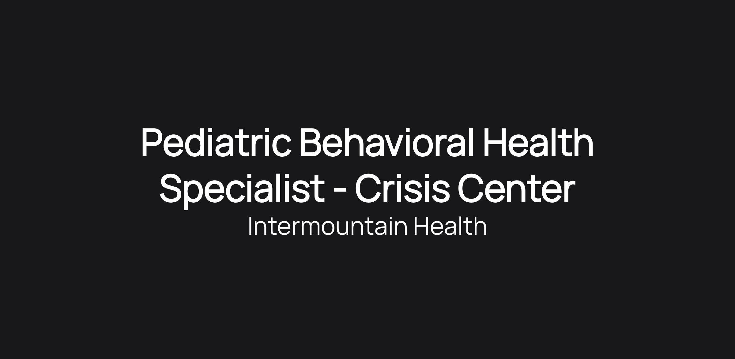 Pediatric Behavioral Health Specialist - Crisis Center