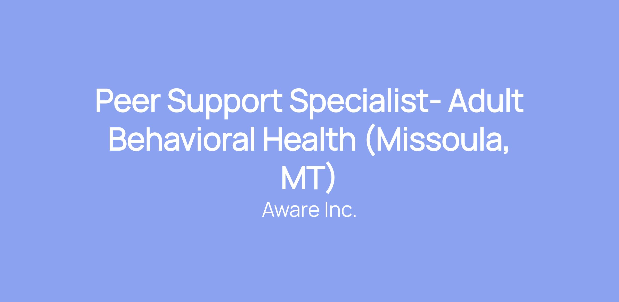 Peer Support Specialist- Adult Behavioral Health (Missoula, MT)