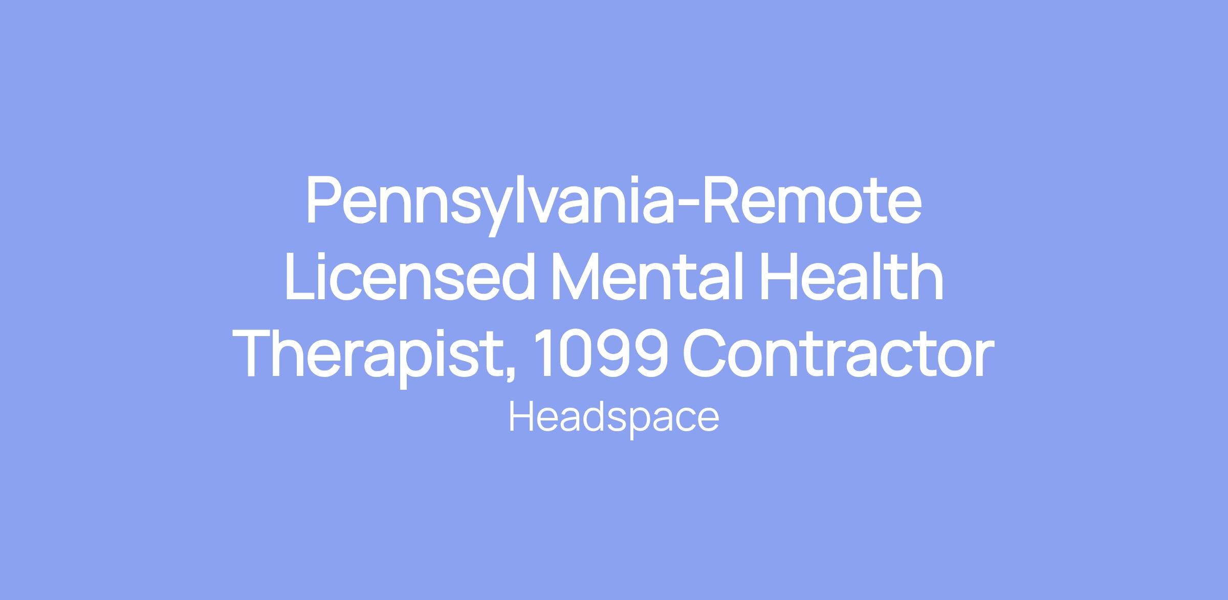 Pennsylvania-Remote Licensed Mental Health Therapist, 1099 Contractor