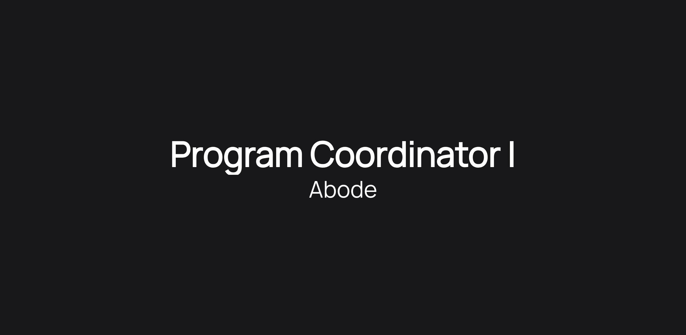 Abode, one of the largest and effective nonprofits working to end homelessness in the Bay Area, is seeking a Program Coordinator I in San Francisco County.