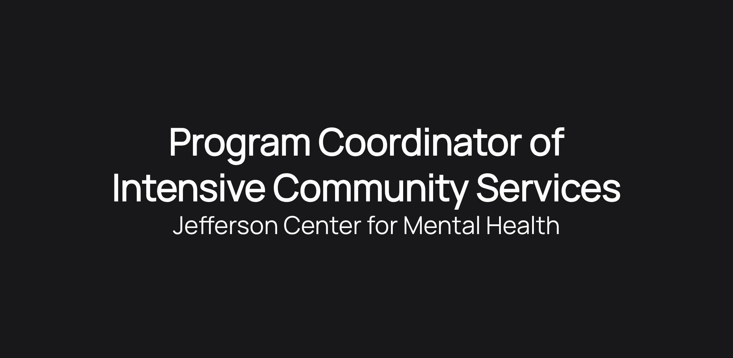 The Program Coordinator of Intensive Community Services supervises the Alternative Care/ Nursing Home team, which is comprised of a team of mixed licensed clinicians (BA, LCSW, LPC, MSW) who serve the SPMI (severe and persistent mental illness) population in the community, along with Hospital Liaison Team, who ensure care coordination during inpatient psych hospitalizations.  Beyond providing clinical supervision, the coordinator also maintains relationships with the 30+ community ACFs and nursing homes that JCMH partners with.  This position is great for anyone who has clinical experience with the SPMI population and is looking to take on a leadership/supervisory role with a well-established and seasoned team.