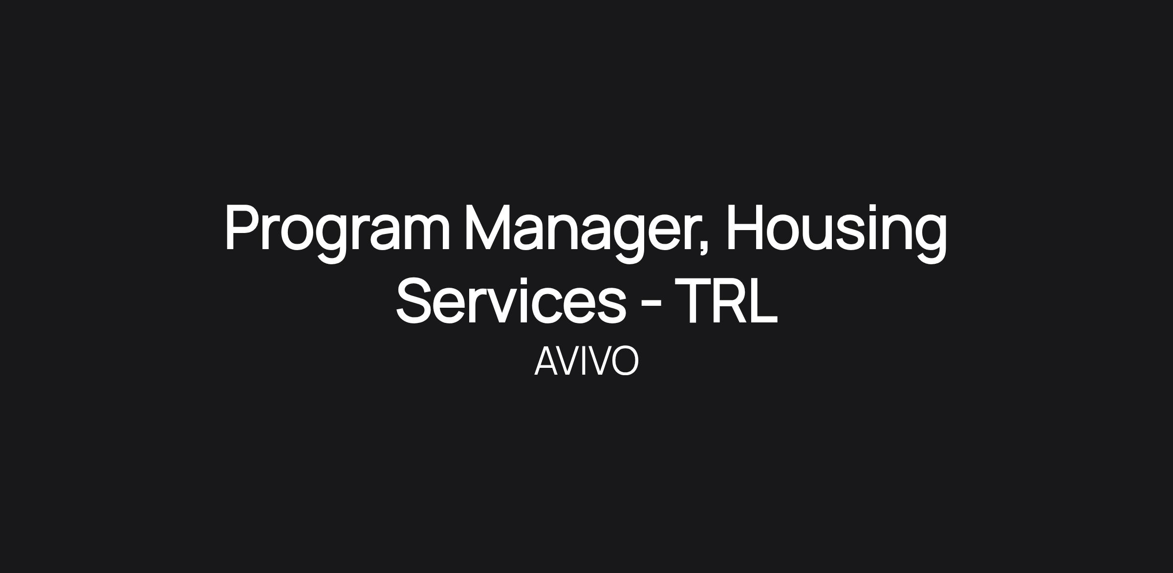 Program Manager, Housing Services - TRL