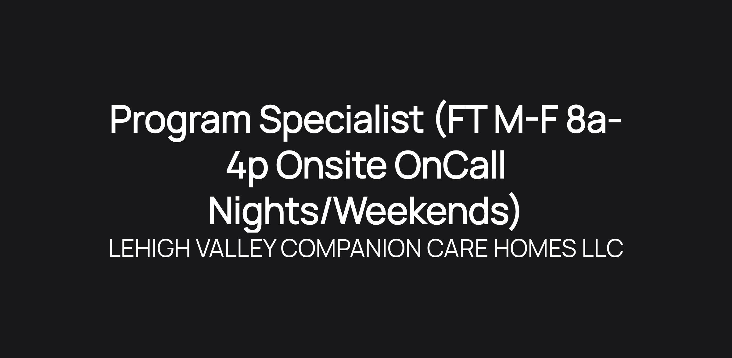 Program Specialist (FT M-F 8a-4p Onsite OnCall Nights/Weekends)