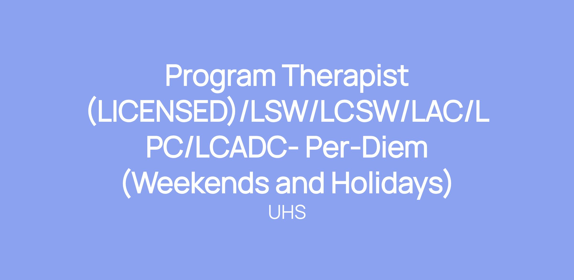 Program Therapist (LICENSED)/LSW/LCSW/LAC/LPC/LCADC- Per-Diem (Weekends and Holidays)