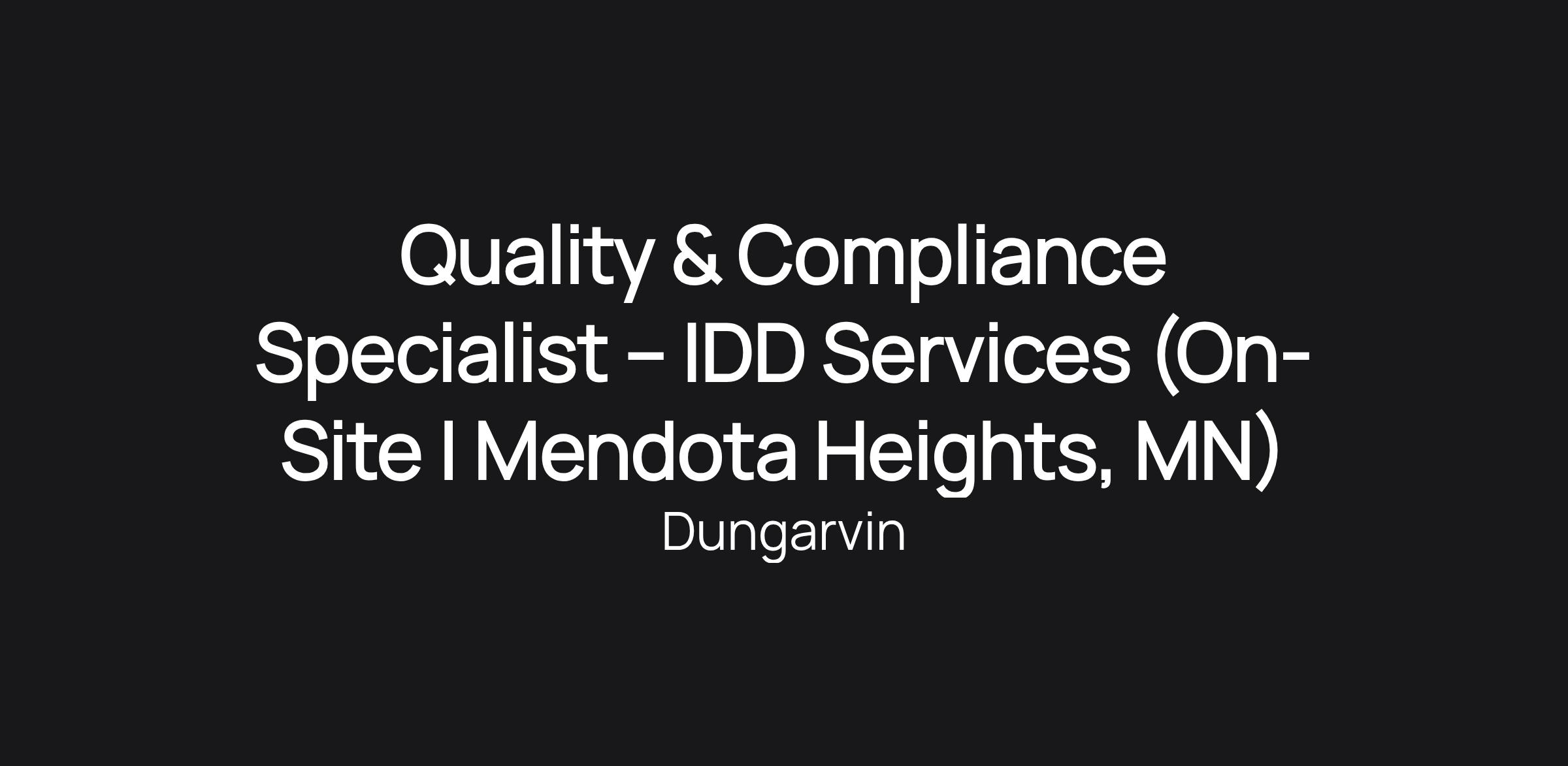 Quality & Compliance Specialist – IDD Services (On-Site | Mendota Heights, MN)