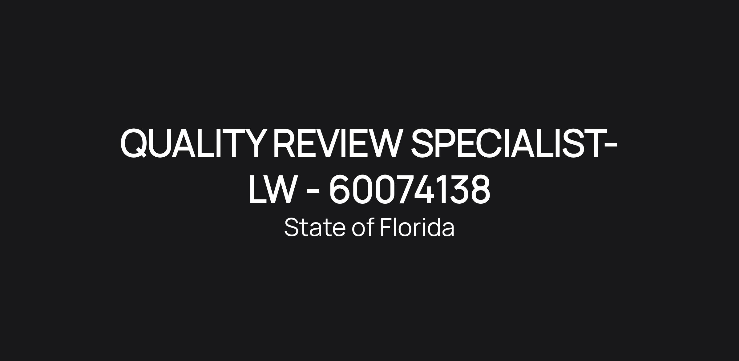 Working Title: QUALITY REVIEW SPECIALIST-LW - 60074138