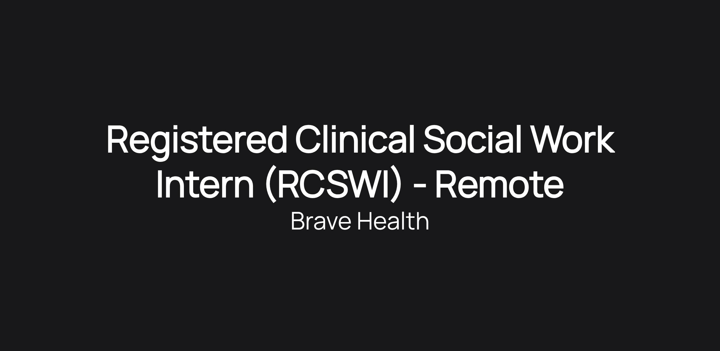 Registered Clinical Social Work Intern (RCSWI) - Remote