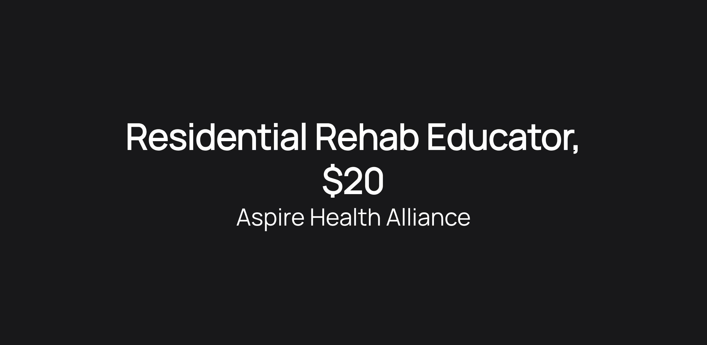 Residential Rehab Educator, $20