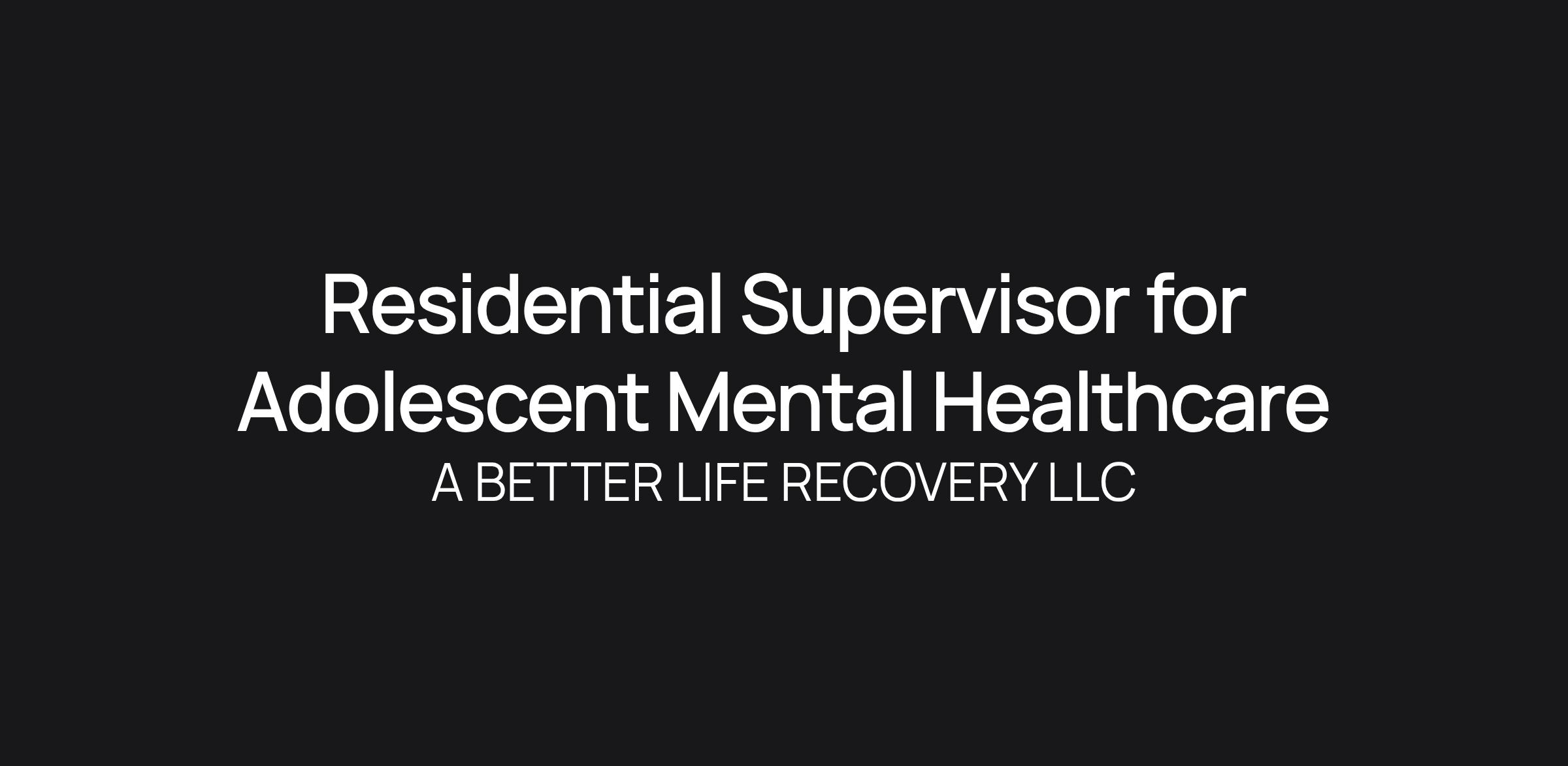 Residential Supervisor for Adolescent Mental Healthcare