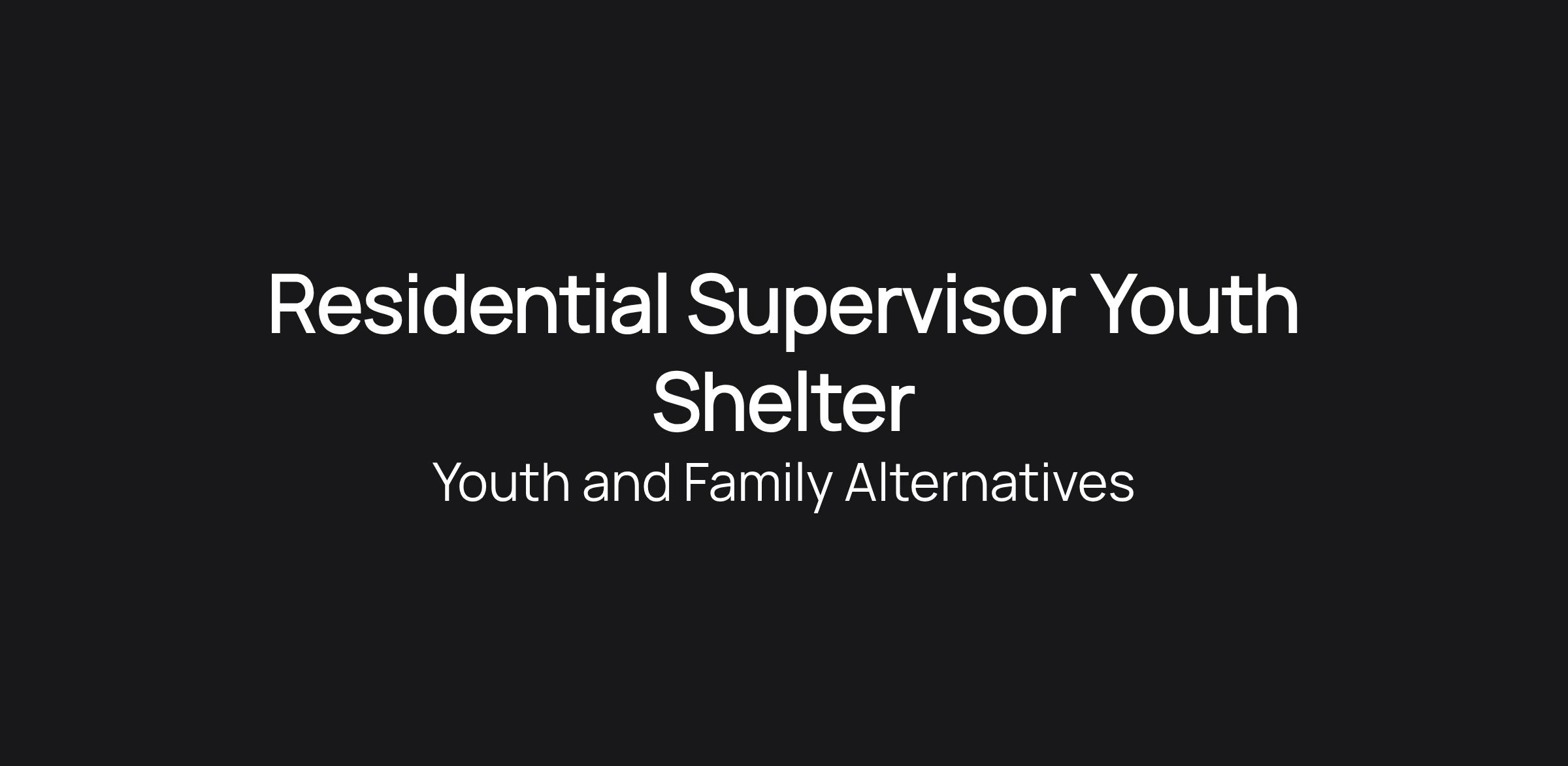Residential Supervisor Youth Shelter