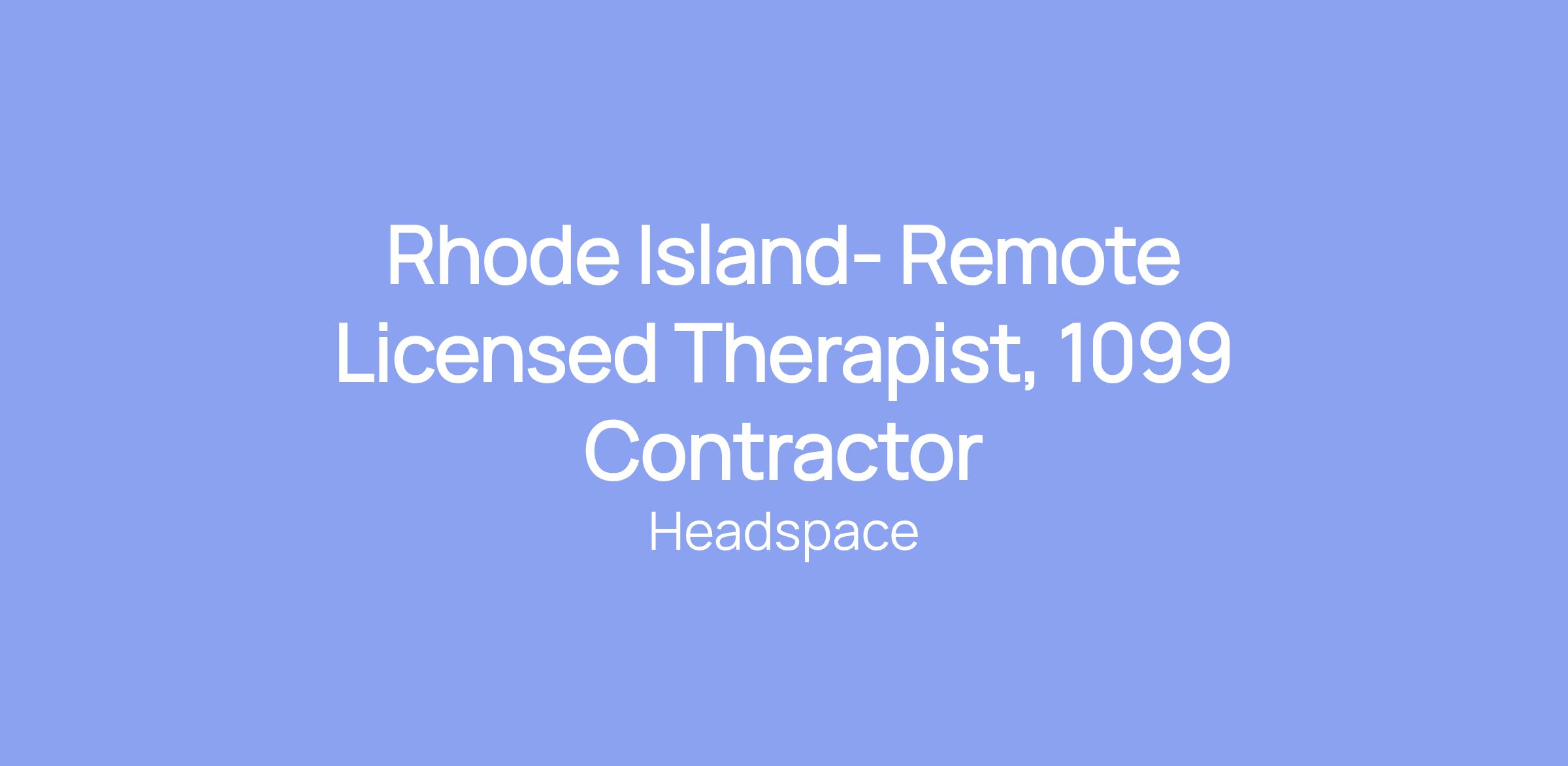 Rhode Island- Remote Licensed Therapist, 1099 Contractor