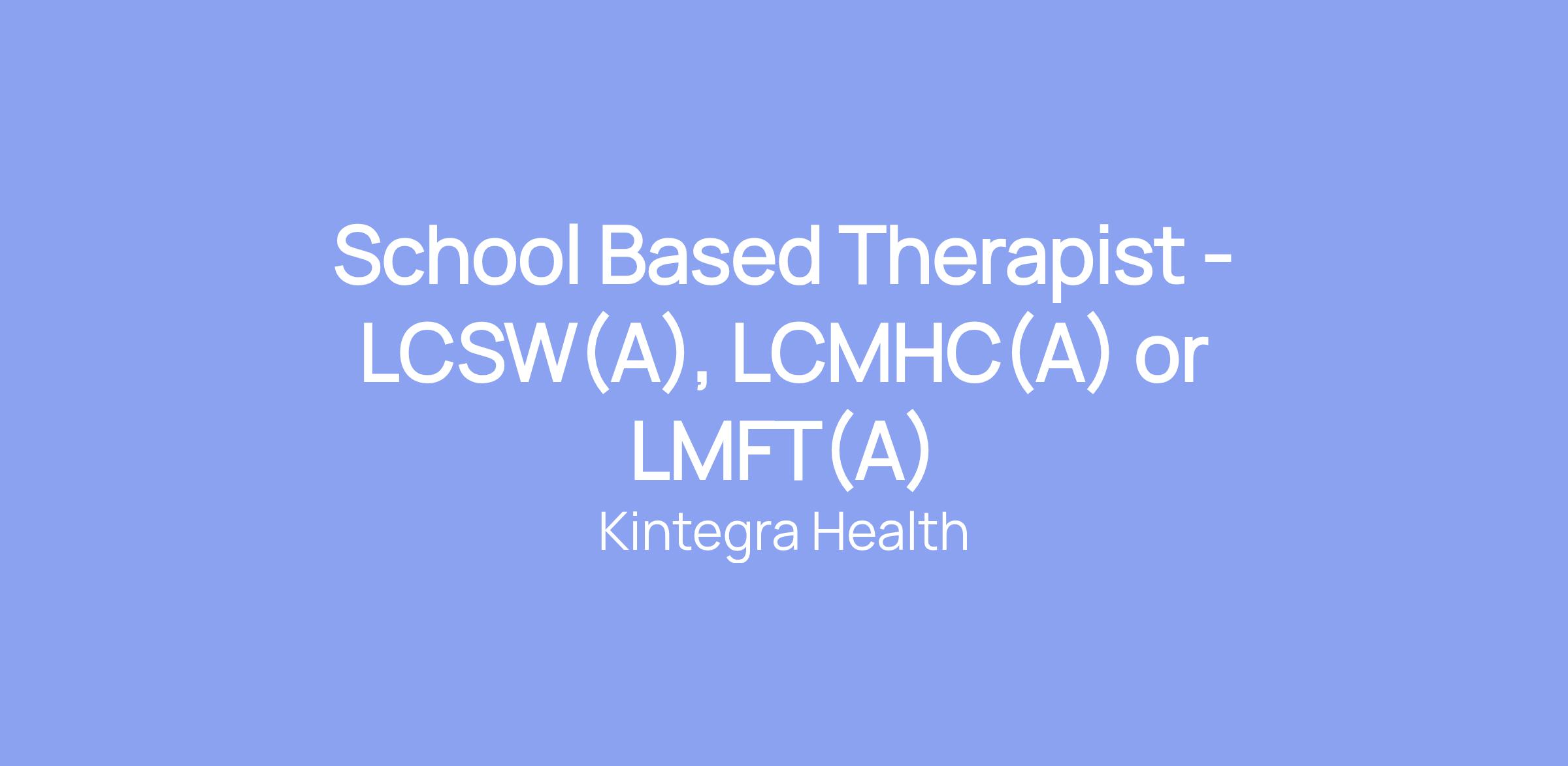 School Based Therapist - LCSW(A), LCMHC(A) or LMFT(A)
