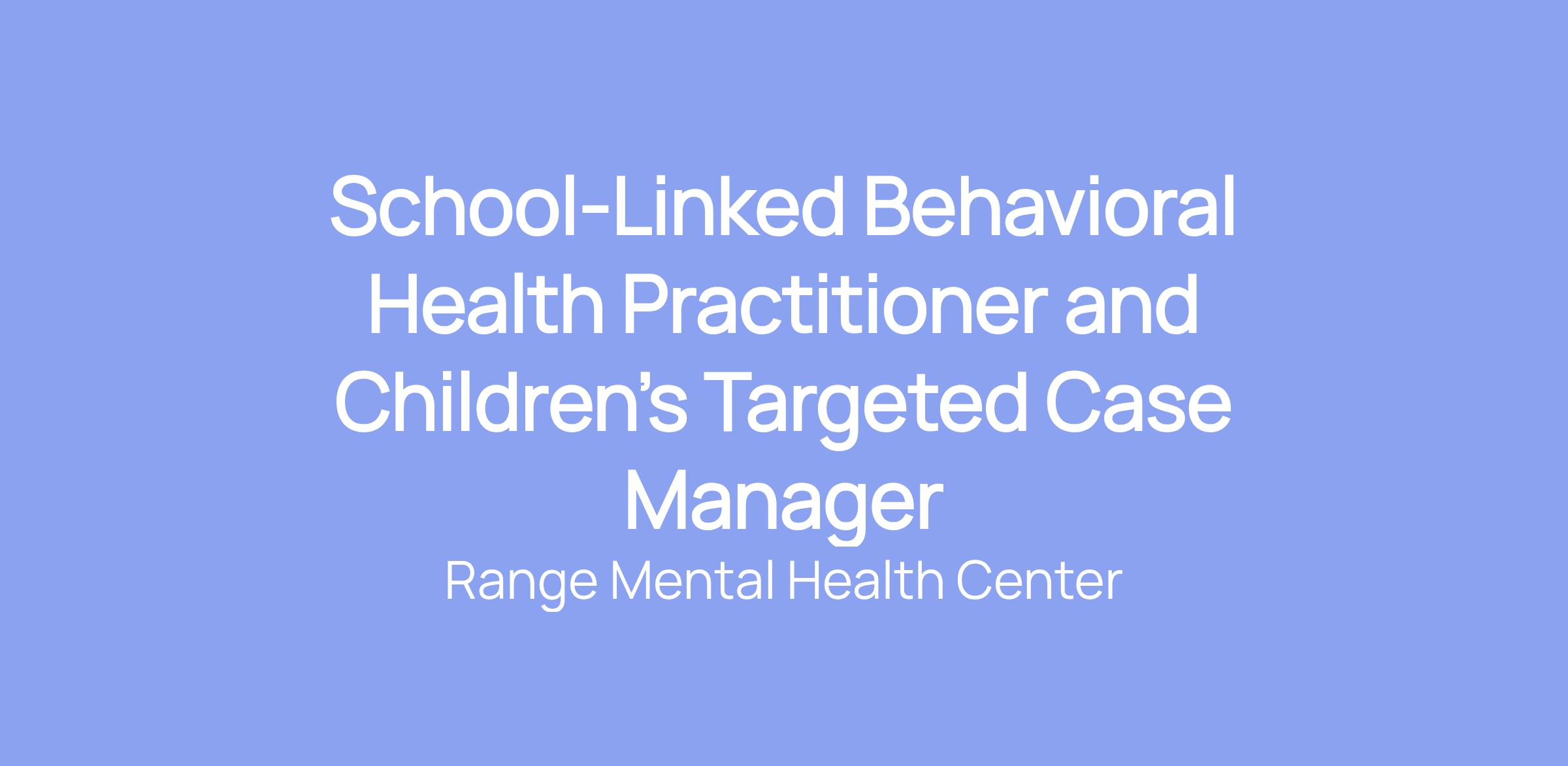 Job Title:                  School-Linked Behavioral Health Practitioner and Children’s Targeted Case Manager