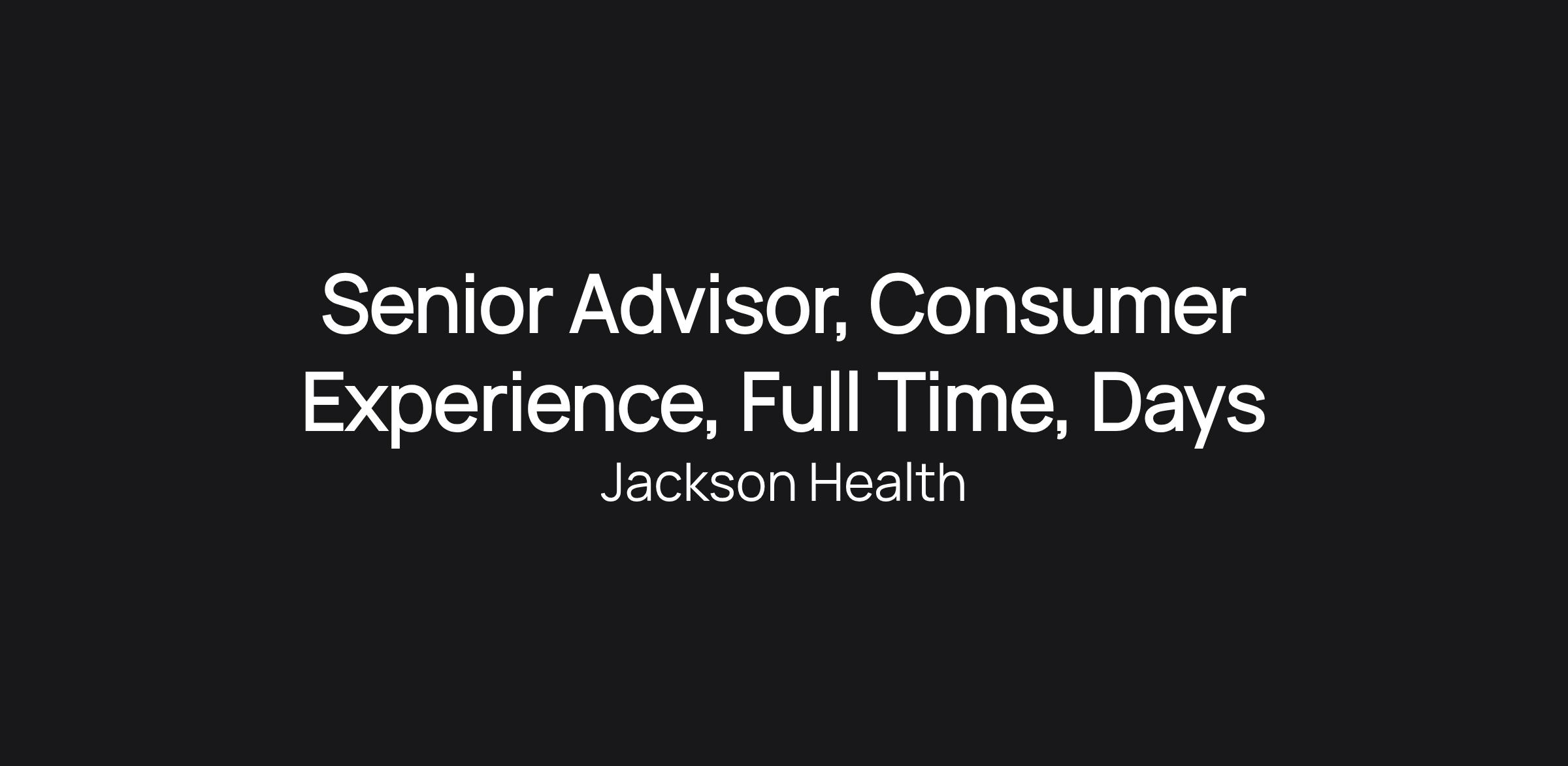 Senior Advisor, Consumer Experience, Full Time, Days