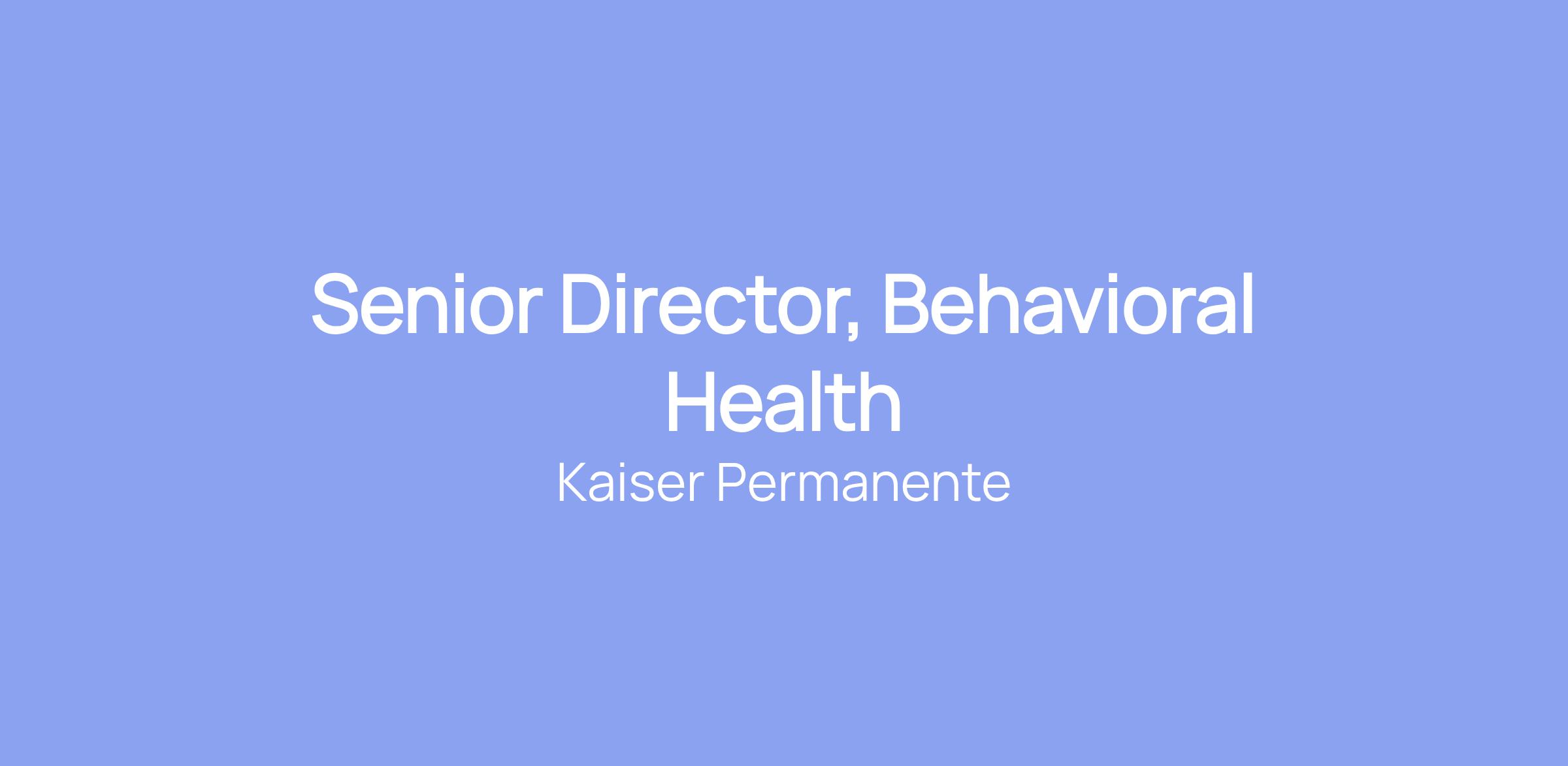Senior Director, Behavioral Health