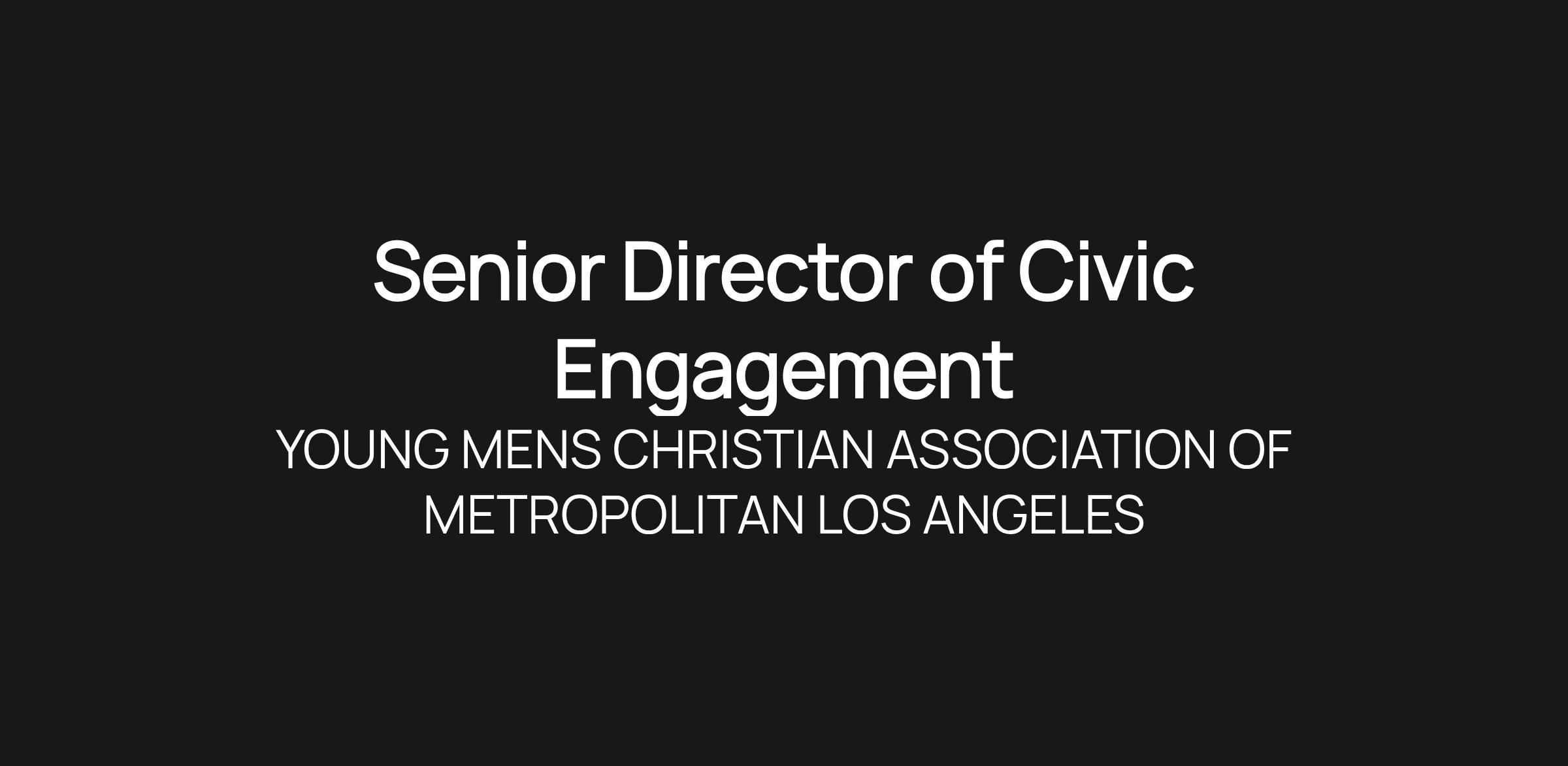 The Senior Director of Civic Engagement is a mission-critical leadership role that advances the YMCA of Metropolitan Los Angeles’ Center for Community Well-Being (CCWB) framework by driving civic engagement strategies that strengthen belonging, promote health equity, and activate community voice across LA County. Reporting to the VP of Social Impact, this role is responsible for designing and leading initiatives rooted in the CCWB’s five pillars — Belonging, Education Equity, Civic Engagement, Economic Stability, and Health Equity — ensuring that YMCA programs serve as anchors of social change and catalysts for collective impact.